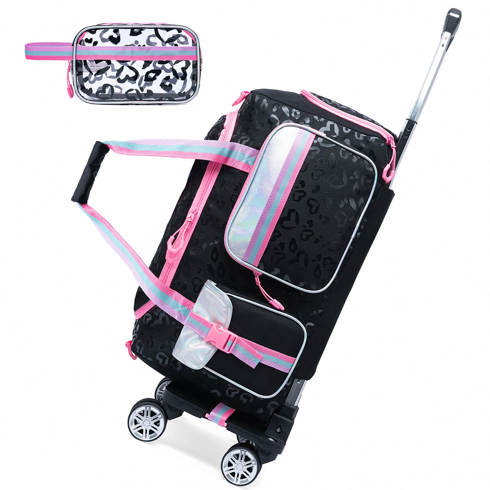 Kids Rolling Duffle Bag with Wheels for Girls Overnight Bag with Makeup Bag Dance Bag for Girls Travel Bag with Travel Toiletry Bag Girls Luggage Bag|Luggage & Bags