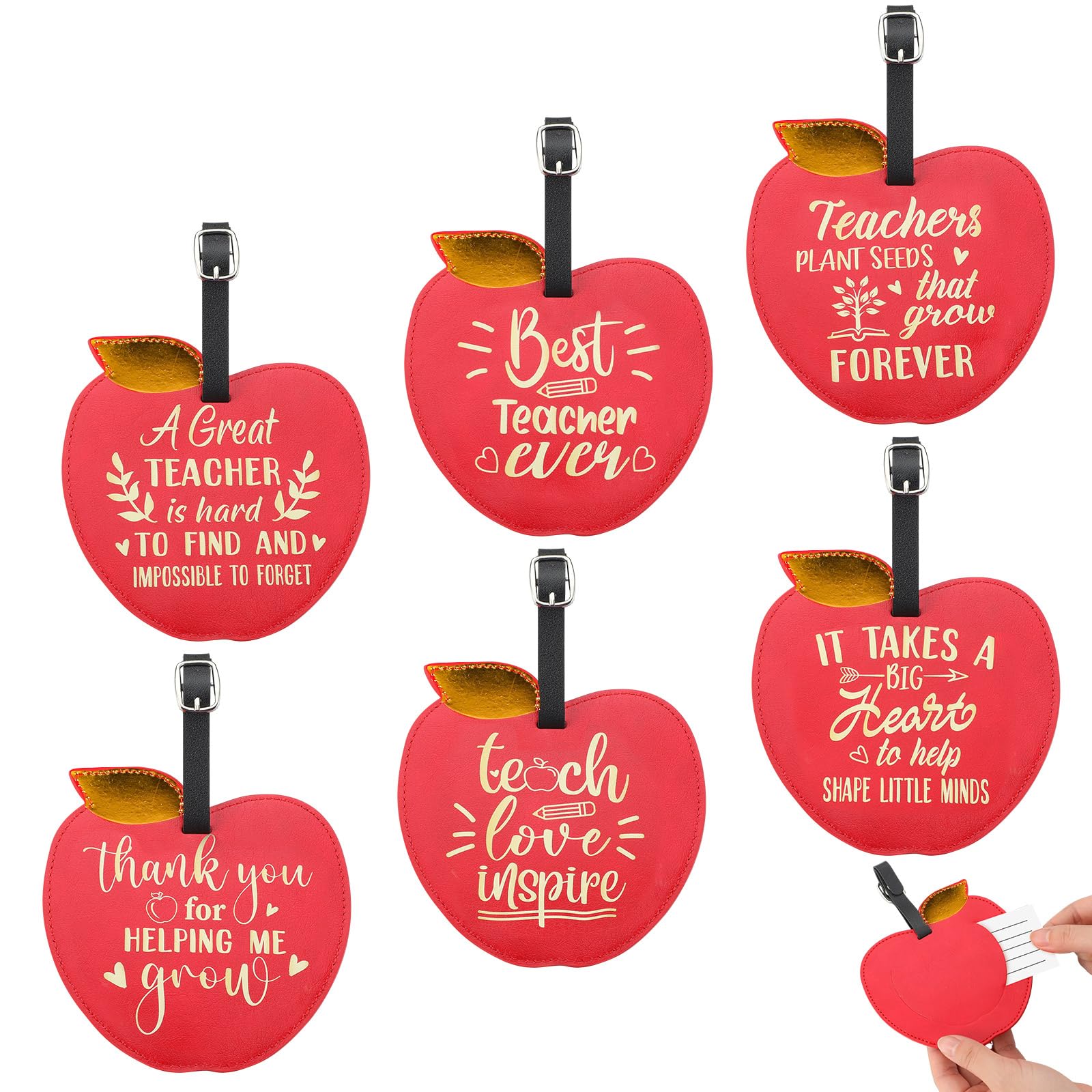Foilswirl 6 Pcs Graduation Gifts Holder Apple Shape Leather Luggage Tags Graduation Teacher Appreciation Gifts for Women Teacher Coworkers|Luggage & Bags