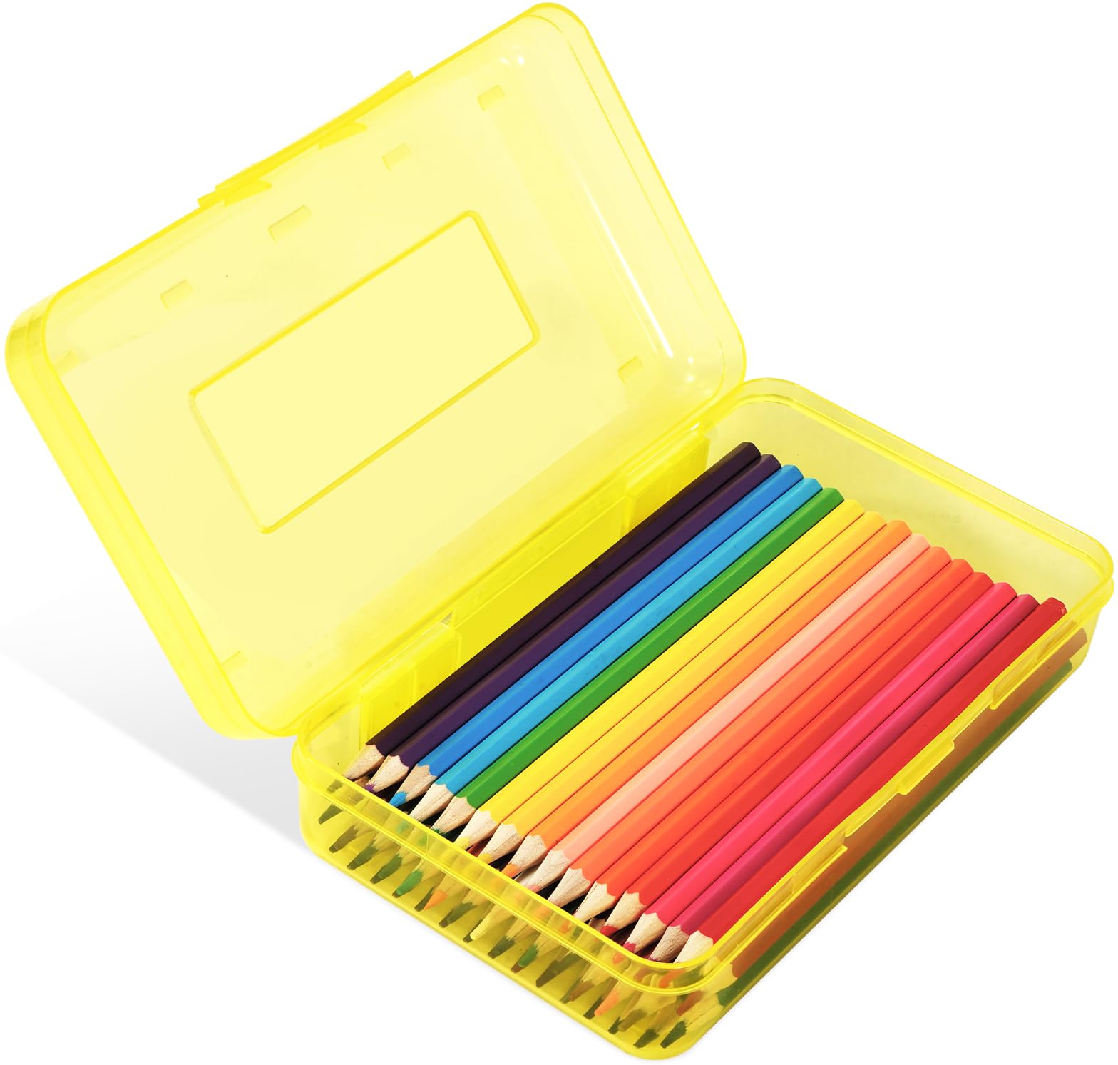 DANRONG Colored Plastic Pencil Box, Large Capacity Pencil Case, Pencil Boxs for Kids Adults, Hard Crayon Box Storage with Snap-Tight Lid for School|Office Supplies