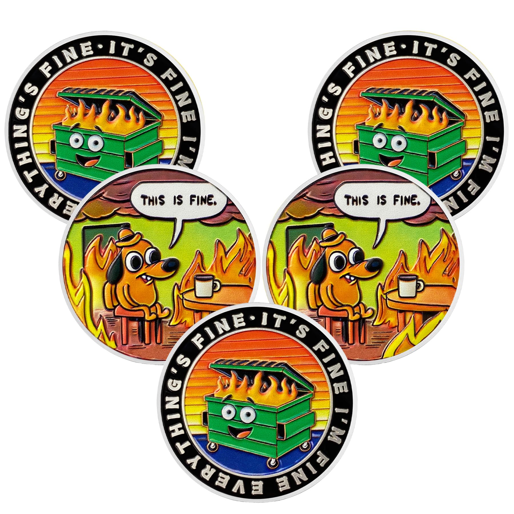 5Pcs Colorful Dumpster Fire Challenge Coin - This is Fine Mini Dumpster Fire Coin - Hilarious Funny Desk Accessories for Work - Coworker Go Away Token|Office Supplies