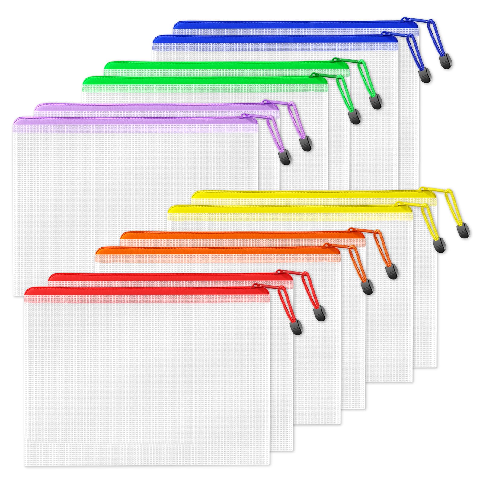 Sooez 14 Pack Mesh Zipper Pouch Bags, A4 Letter Size, Zipper Bags with Label Pocket, Waterproof Pouches for Classroom Organizer, Board Game Toy|Office Supplies