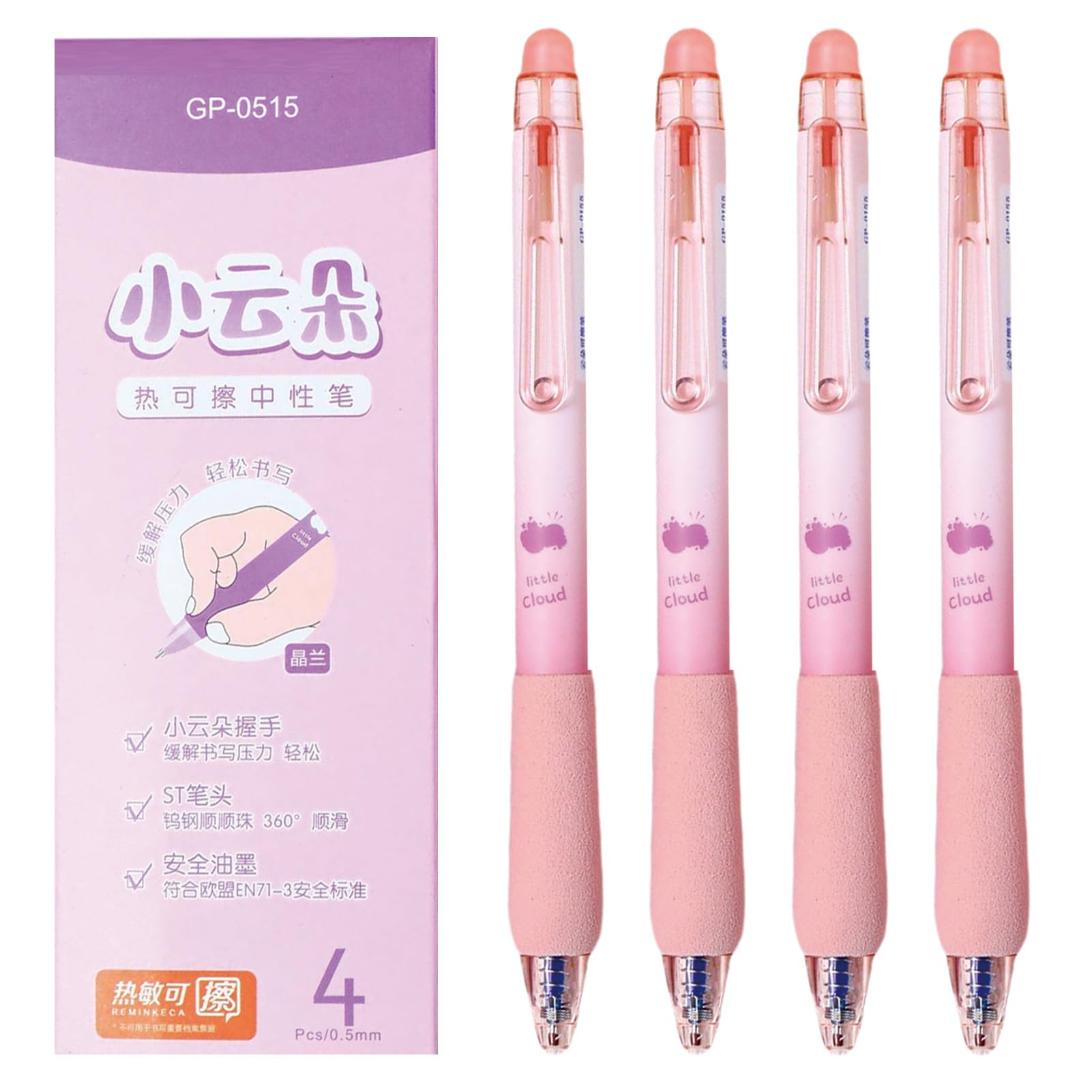 MOZXIRZ 4 Pcs Erasable Pens Cute Retractable Erasable Pens 0.5mm Black Ink Smooth Writing Pen Aesthetic Pink Gel Pen for Women Girls Boys Men Office|Office Supplies