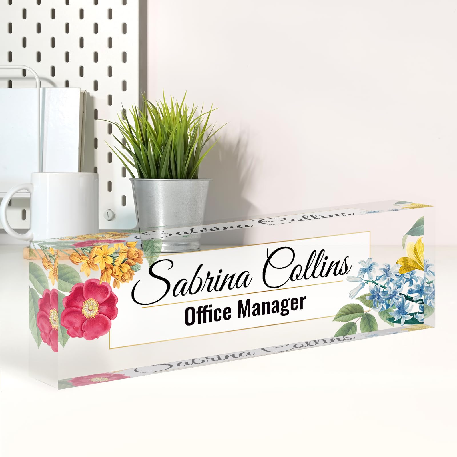 Name Plate for Desk, Desk Name Plate Personalized, Blue Office Decor for Women Men, Acrylic Desktop Accessories, Office Gifts for Boss Nurse Teacher|Office Supplies