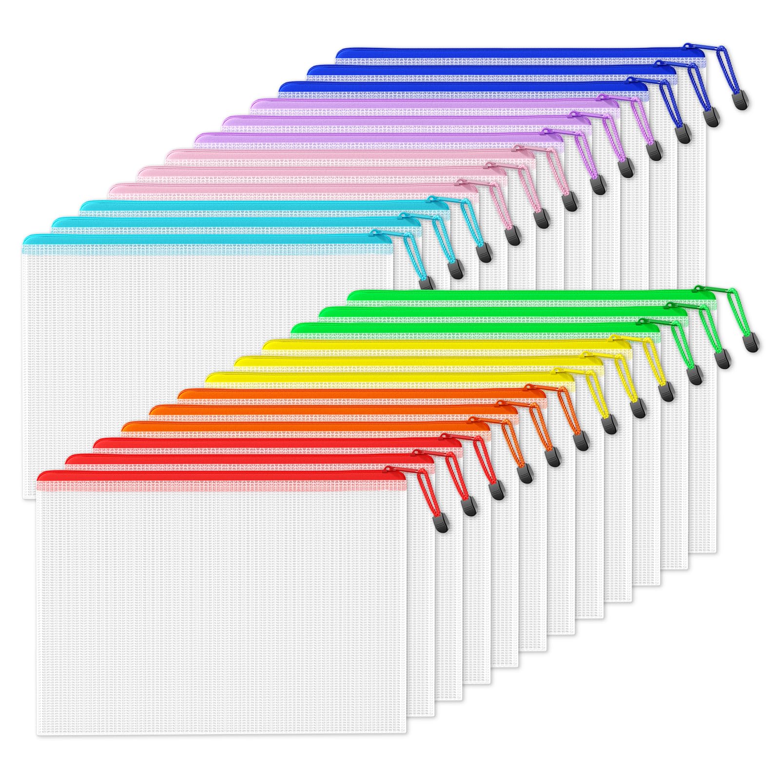 SUNEE Plastic Mesh Zipper Pouch 11x16 in (8 Colors, 24 Packs),Extra Large Water-Resistant Zip Bag for School Office Supplies, Puzzles & Games|Office Supplies