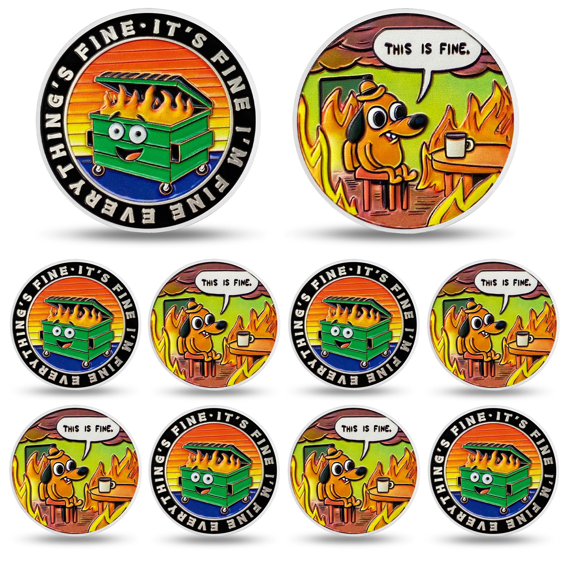 10Pcs Colorful Dumpster Fire Challenge Coin - This is Fine Mini Dumpster Fire Coin - Hilarious Funny Desk Accessories for Work - Coworker Go Away|Office Supplies