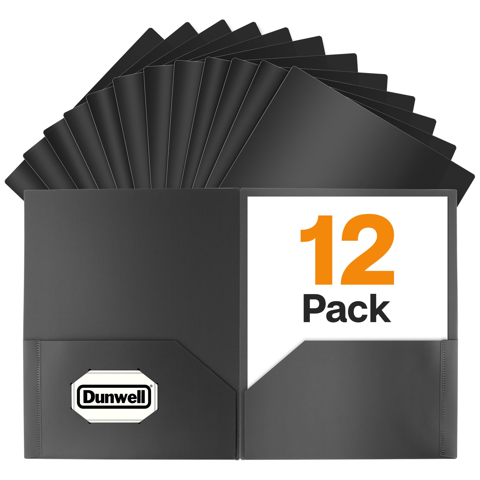 Dunwell Plastic Folders with Pockets (Black, 12 Pack), 2 Pocket Poly Folders for School, Home or Office, Durable Acid-Free Poly, Includes Removable|Office Supplies