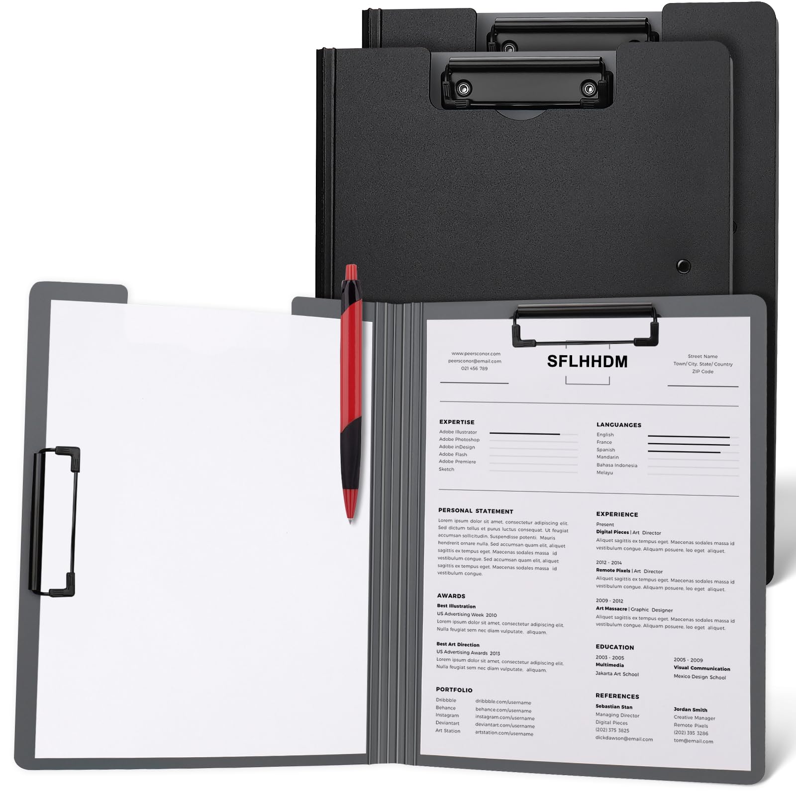 2 PCS Clipboard Foldable,360°Cover Folder Clipboard Plastic Clipboards with Double Low Profile Clip,File Folder Storag Clipboards for A3 A4 Paper,|Office Supplies