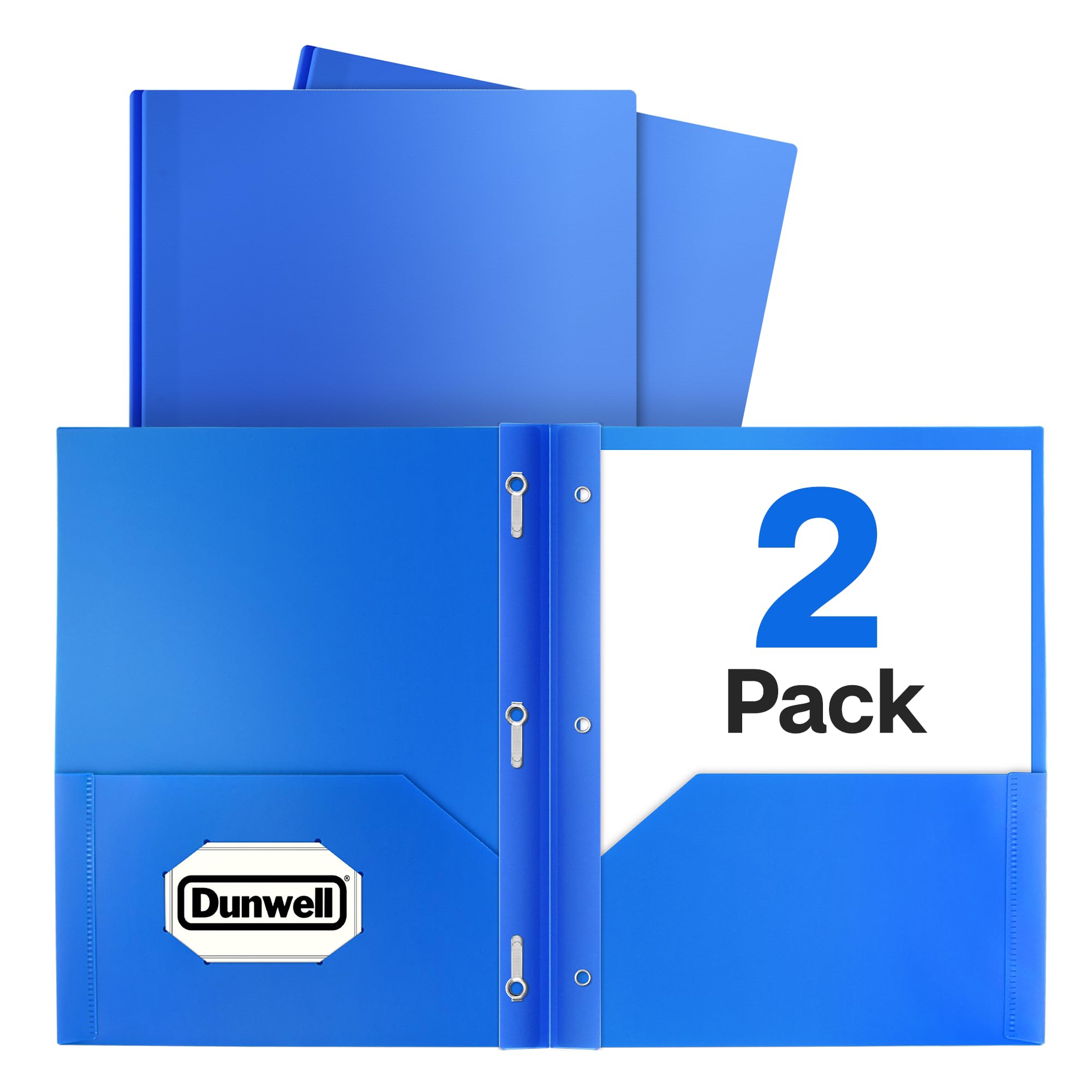 Dunwell Plastic Folders with 3 Prongs, (2 Pack, Blue), 2-Pocket Folders with Fasteners, Durable Acid-Free Poly for Long Term Use, Labels Included|Office Supplies