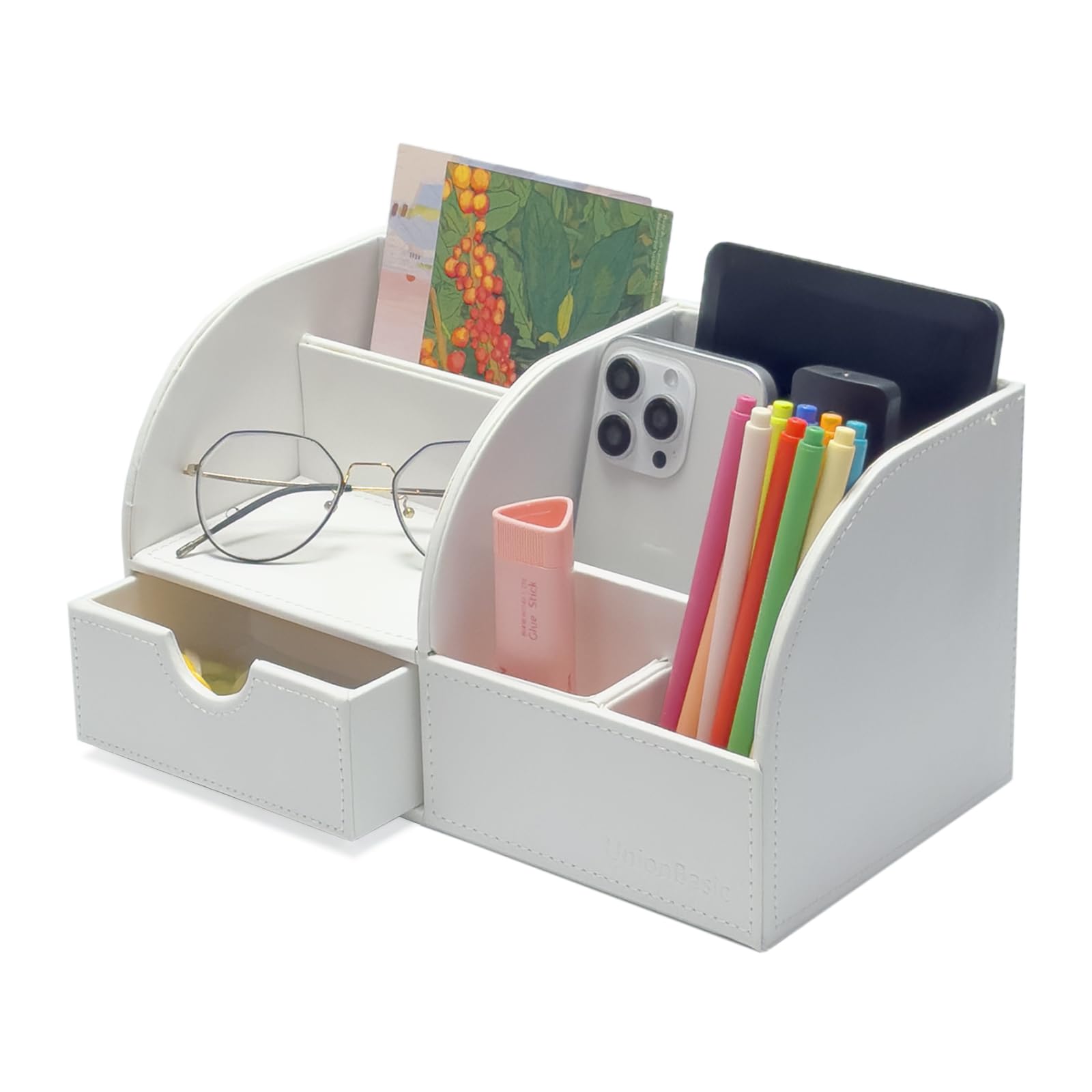 UnionBasic Office Desk Organizer - Multifunctional PU Leather Desktop Storage Box - Business Card/Pen/Pencil/Mobile Phone/Stationery Holder, White|Office Supplies