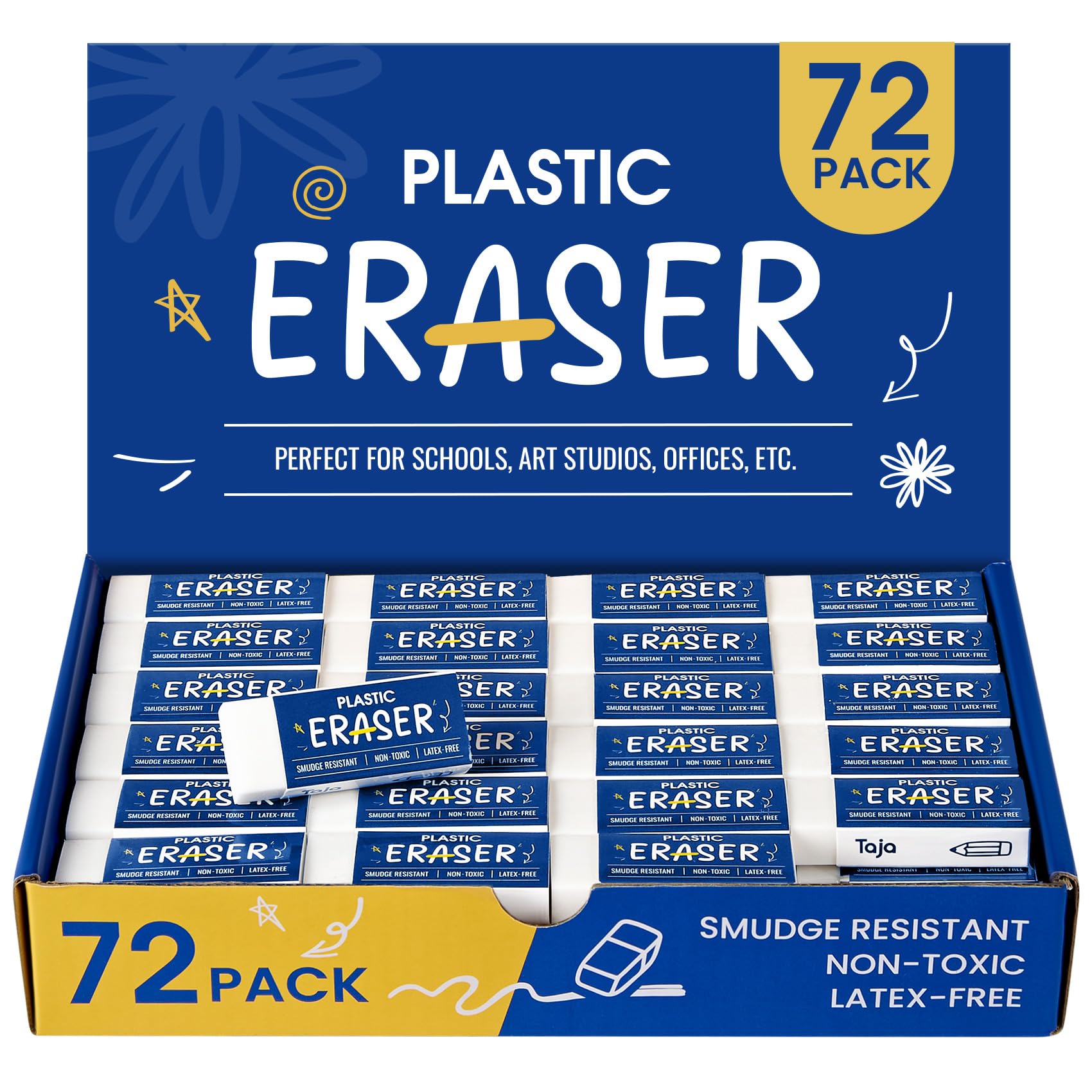72 Pack White Erasers Bulk, Large Pencil Erasers for School, Classroom, Teacher, Homeschool, and Office Supplies|Office Supplies