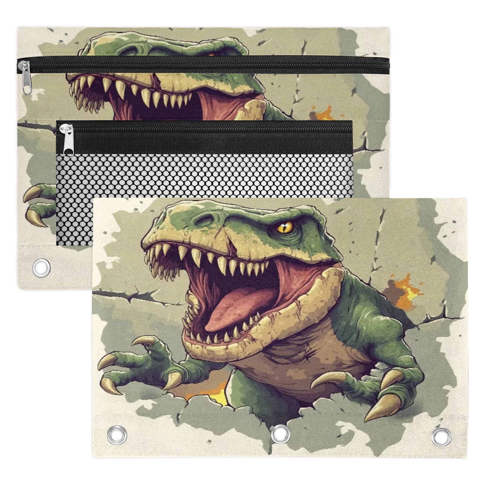 Gumuslen Animal Dinosaur Pencil Pouch for 3 Ring Binder Fire Wall Hole Pencil Case Bag with Clear Window Zipper Pockets for Kids Girls Boys Students|Office Supplies