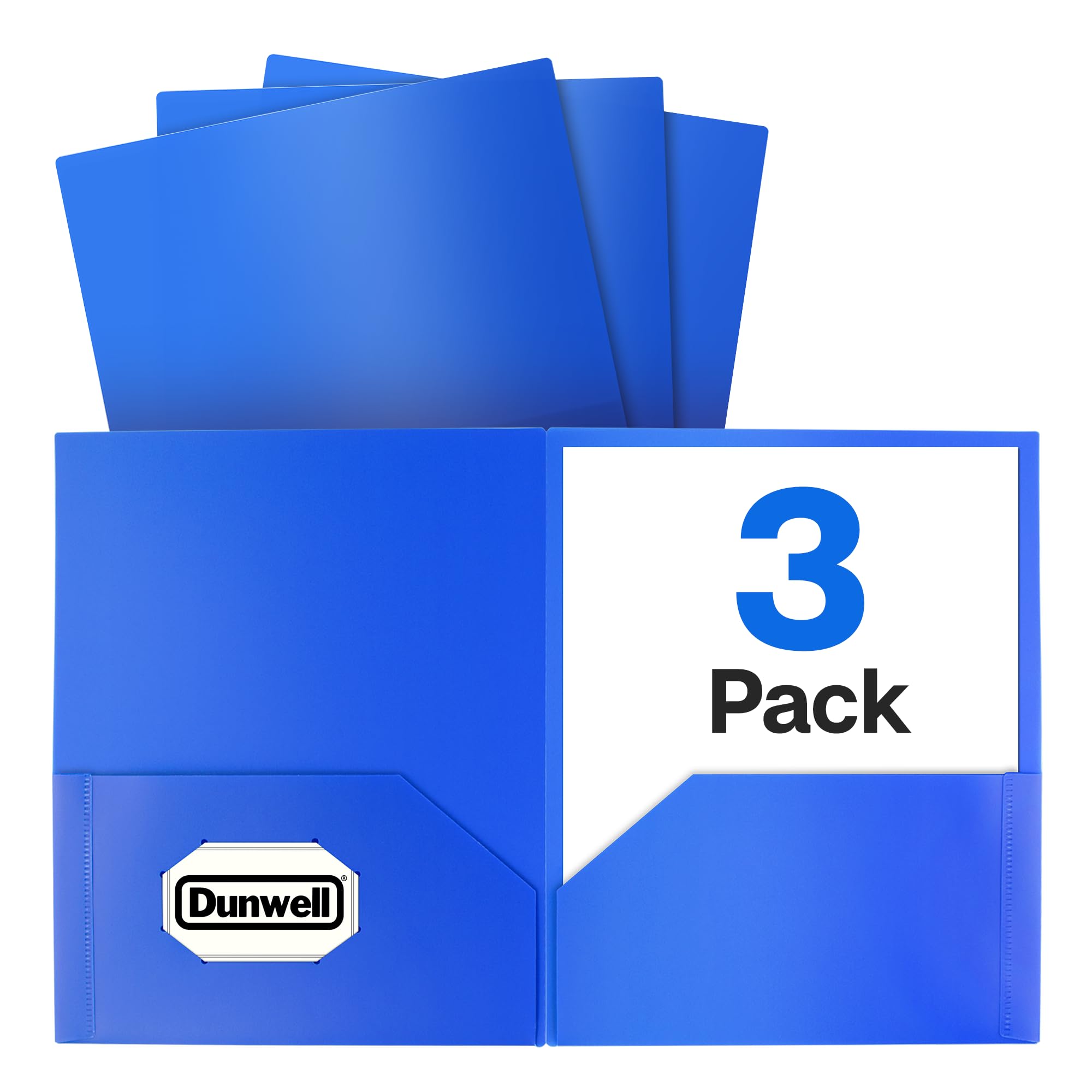 Dunwell Plastic Folders with Pockets (Blue, 3 Pack), 2 Pocket Poly Folders for School, Home or Office, Durable Acid-Free Poly, Includes Removable|Office Supplies