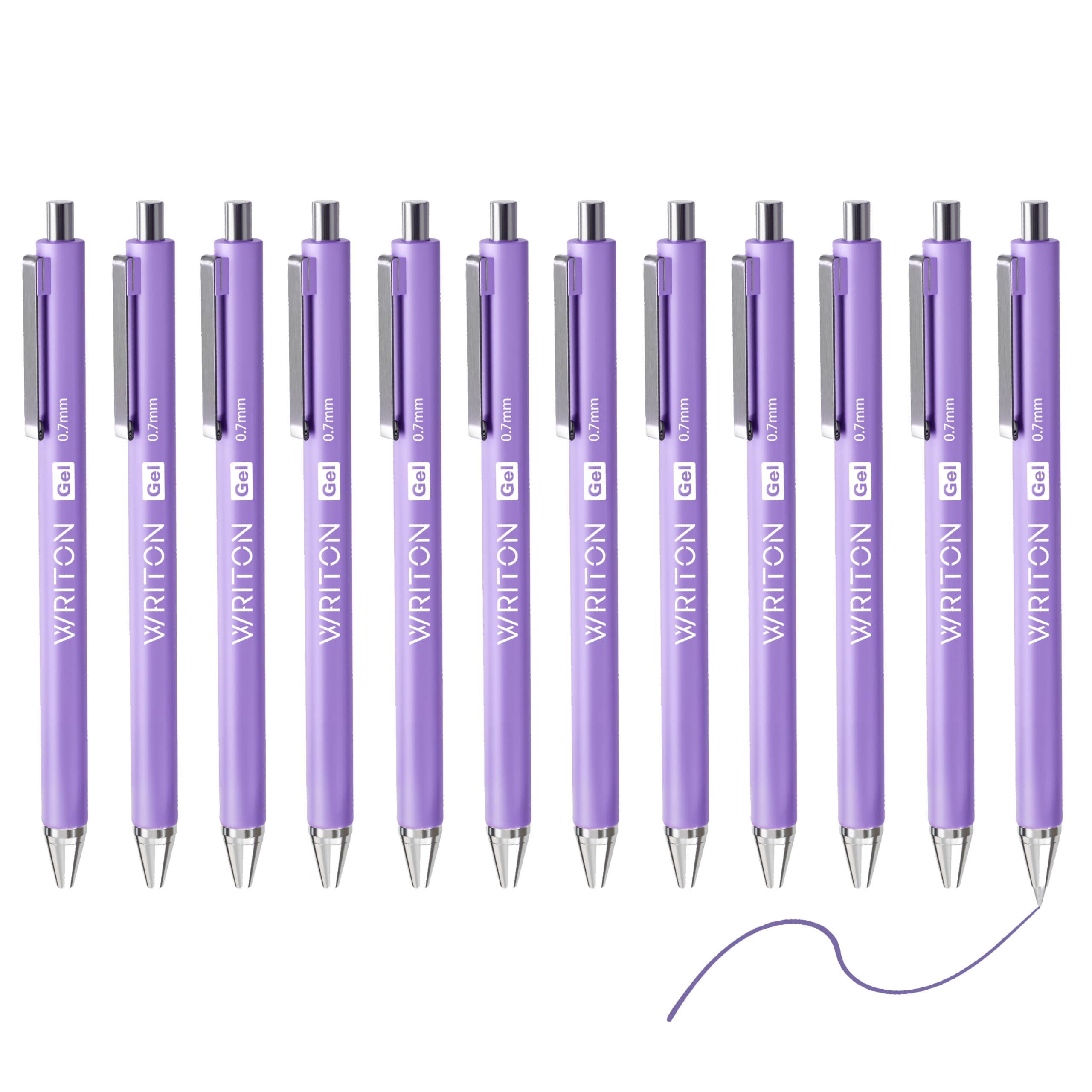 Writon Retractable Gel Pens, Comfort Barrel, 0.7mm Fine Point, Purple Ink, 12 Pack|Office Supplies