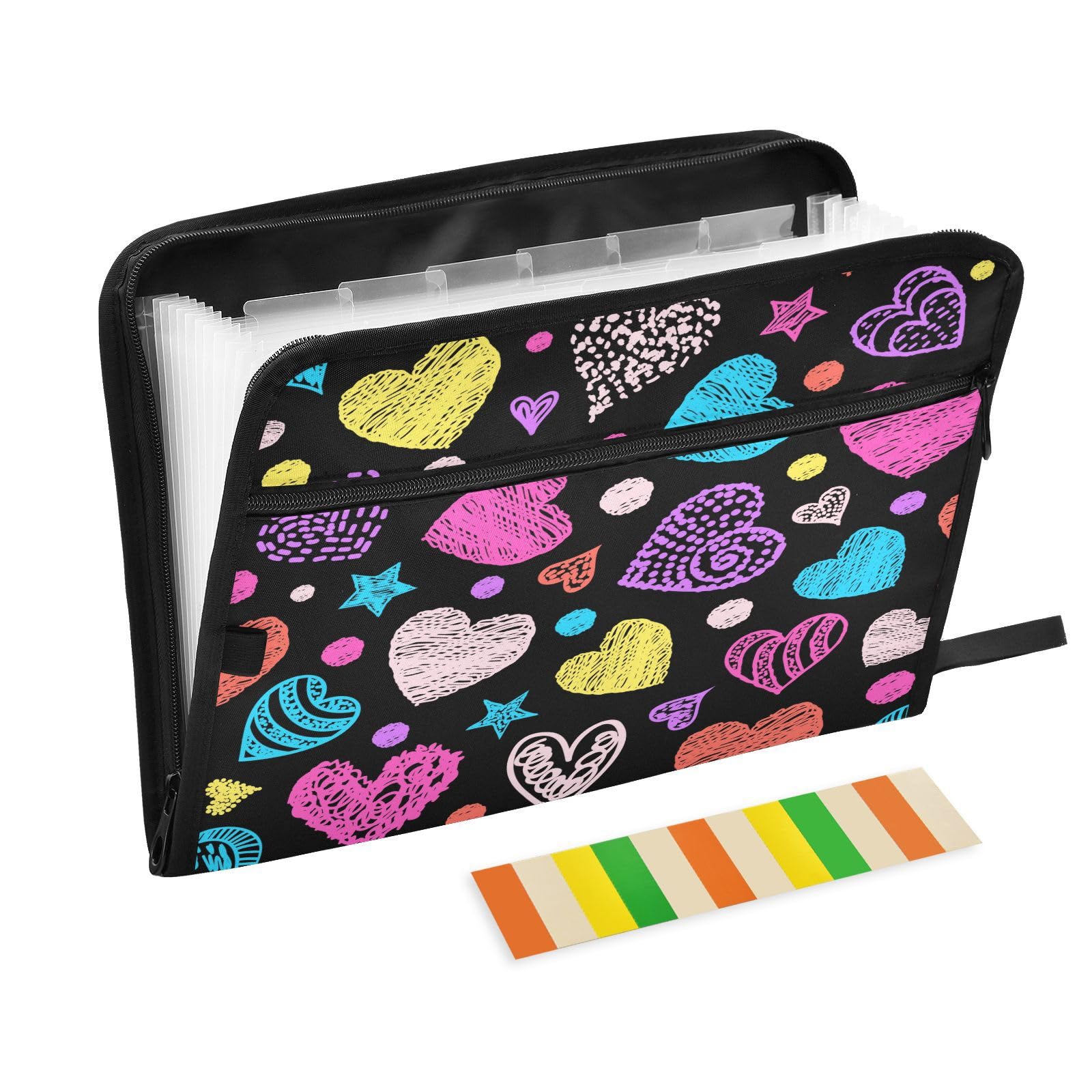 pnyoin 13 Pocket Expanding File Folder Zipper Accordion File Folder Expandable Folder with Customized Labels Document Organizer for School Kids Office|Office Supplies