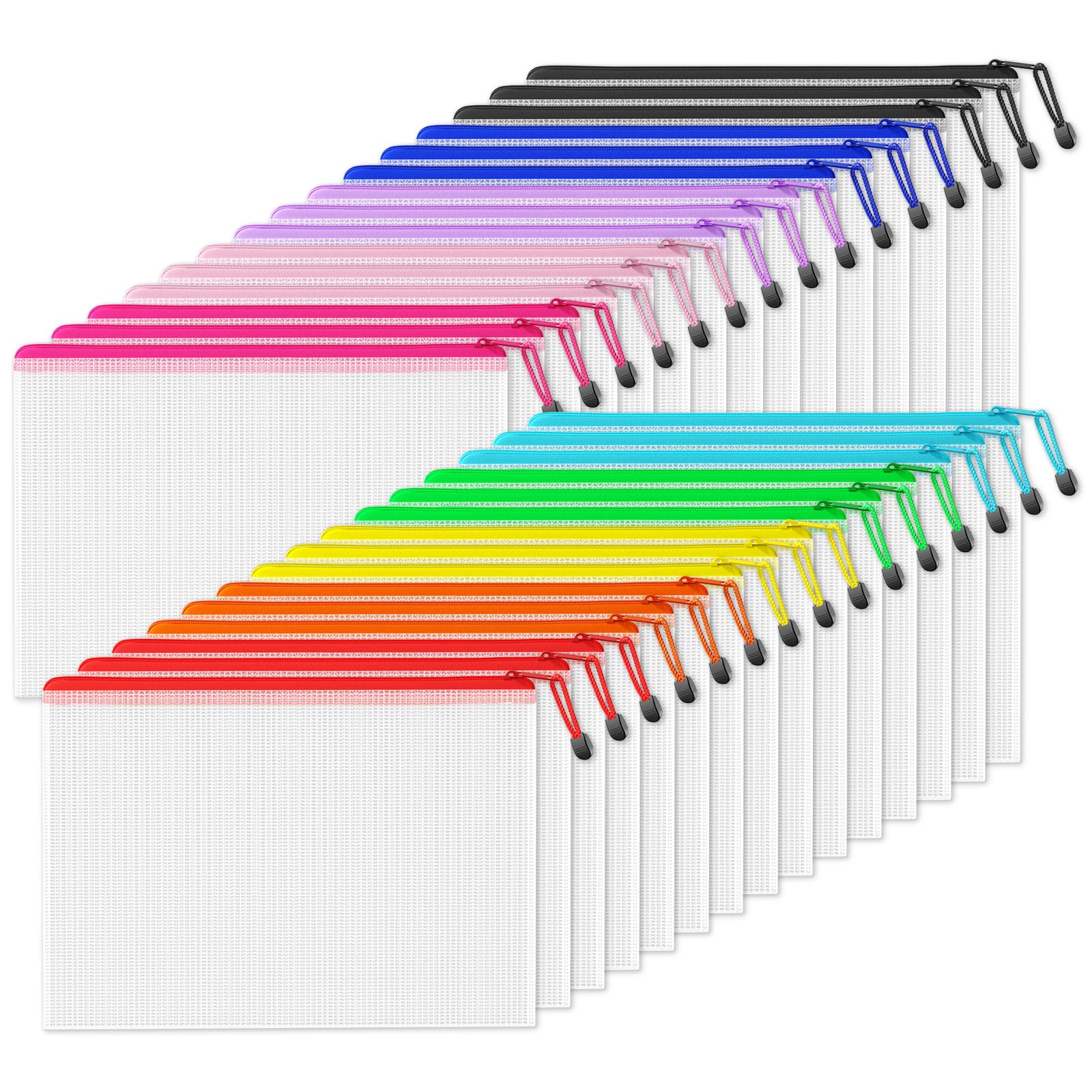 SUNEE Mesh Zipper Pouch 11x16 in (10 Colors, 30 Packs), Large Mesh Zipper Pouch Bags for School Office Supplies, Puzzles & Games, Travel Accessories,|Office Supplies