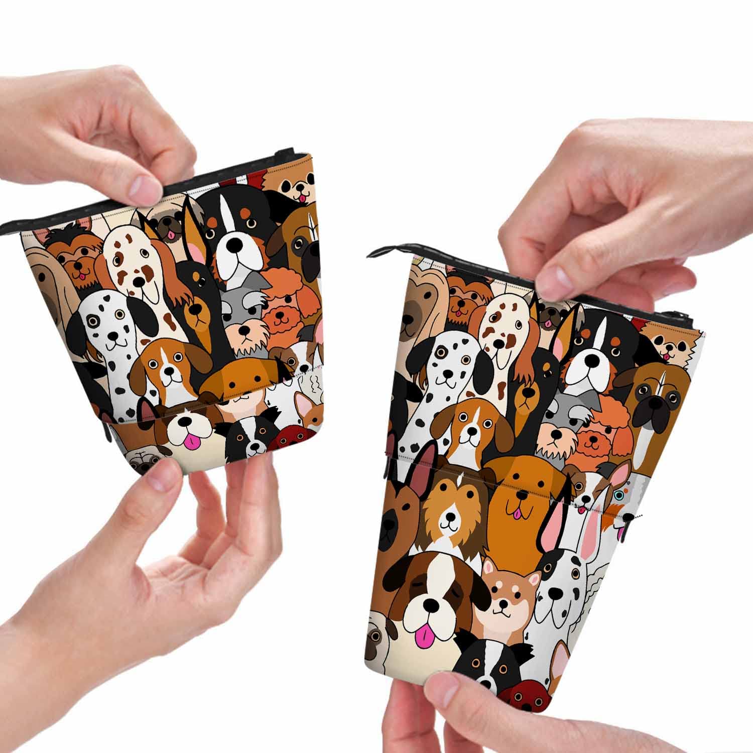 Swono Dog Colored Pencil Case Organizer Cute Doodle Animal Stand Up Pencil Case Pencil Holder Pencil Pouch Cosmetics Bag For Women Men Colorful|Office Supplies