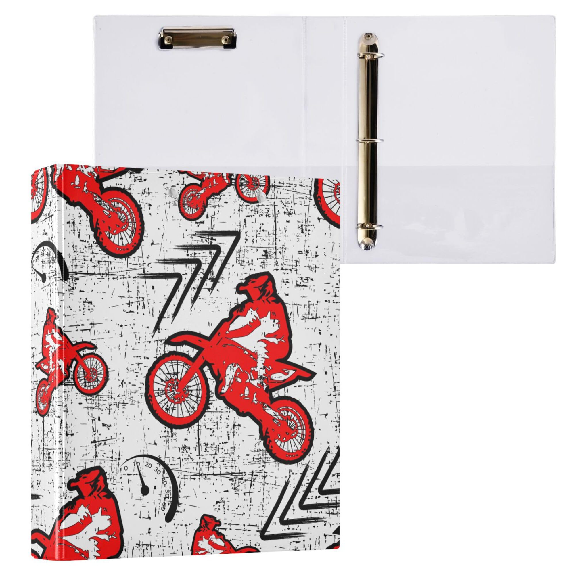 Fisyme Motocross Red 1.5 Inch 3 Ring Binder with Clipboard Round Ring Binder Holds 200 Sheets 8.5" x 11" Letter Size Paper for Office Supplies, 1 Pack|Office Supplies