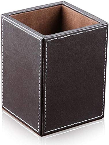 Bargain Crusader Black PU Leather Square Pens Pot Pencils Holder Cup Desktop Stationery Organizer Case Holder Office Accessories Container Box Desk|Office Supplies