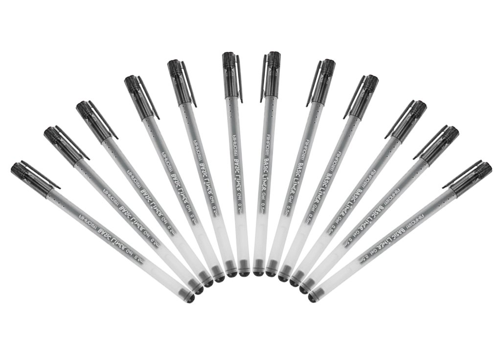 Basic Liner Gel Pen, 0.5mm, Extra Fine Point, Needle Tip, School/Office Smooth Writing Roller Ball Pen, Clear Barrel, Refillable Pens, Box of 10|Office Supplies