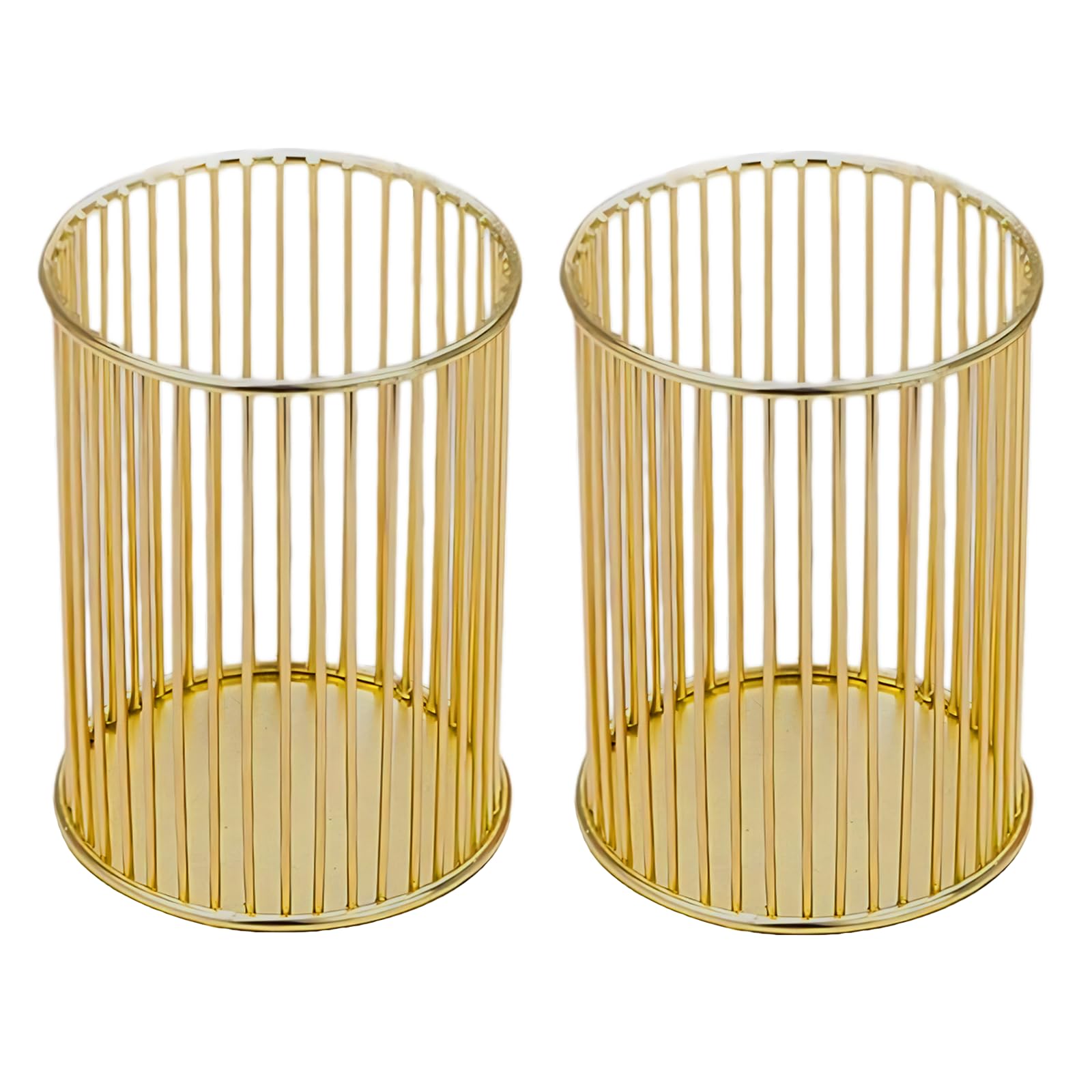 Vyooxcy 2 Packs Gold Metal Pen Holder,Wire Metal Pencil Holder Mesh Pen Holder for Desk, Makeup Brush Holder Pencil Cup Organizer for Office Home|Office Supplies