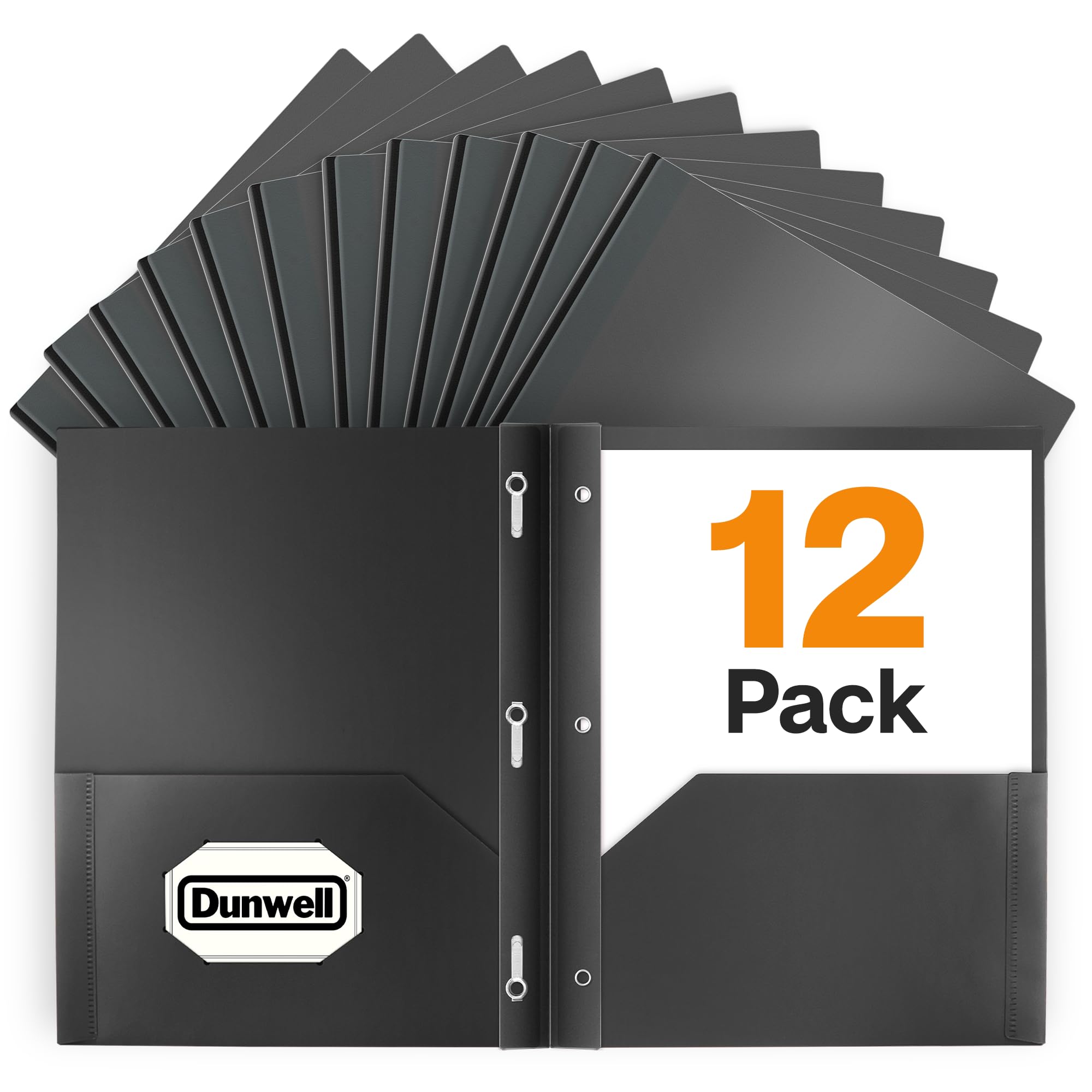 Dunwell Plastic Folders with 3 Prongs, (12 Pack, Black), 2-Pocket Folders with Fasteners, Durable Acid-Free Poly for Long Term Use, Includes Labels|Office Supplies
