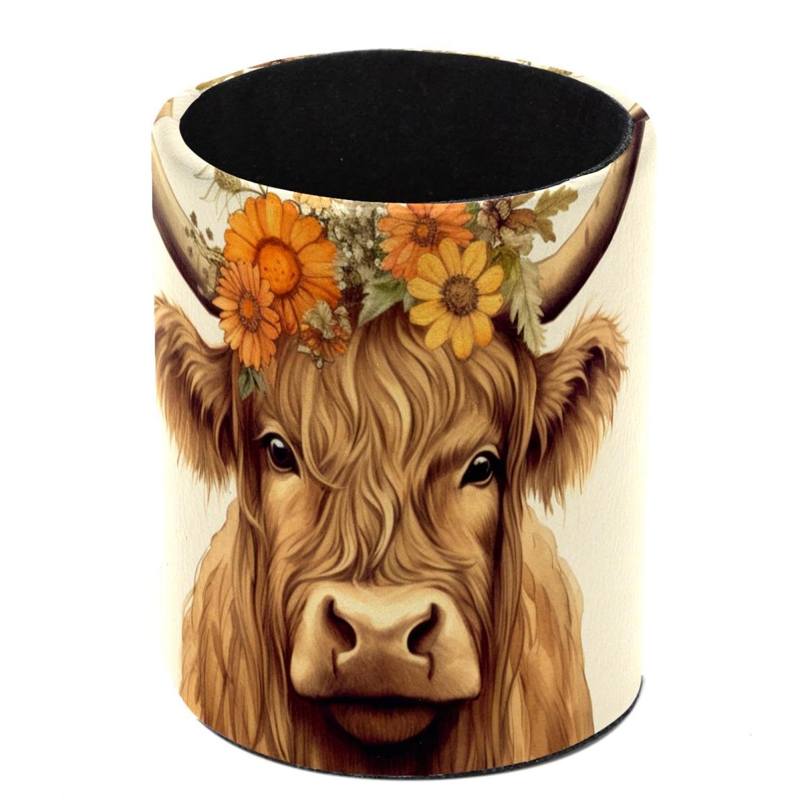 Vcedizo Pen Holder for Desk, Farm Cow Flower Pencil Holder Leather Pen Holder Cup Pencil Cup Holder for Desk Office Pen Organizer|Office Supplies