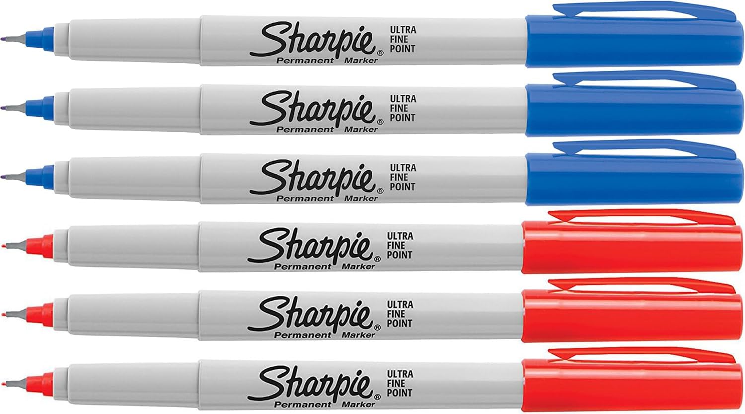 Sharpie Blue Red Ultra Fine Point Permanent Markers, 6-Count (3 Blue, 3 Red) Office/School Supplies|Office Supplies