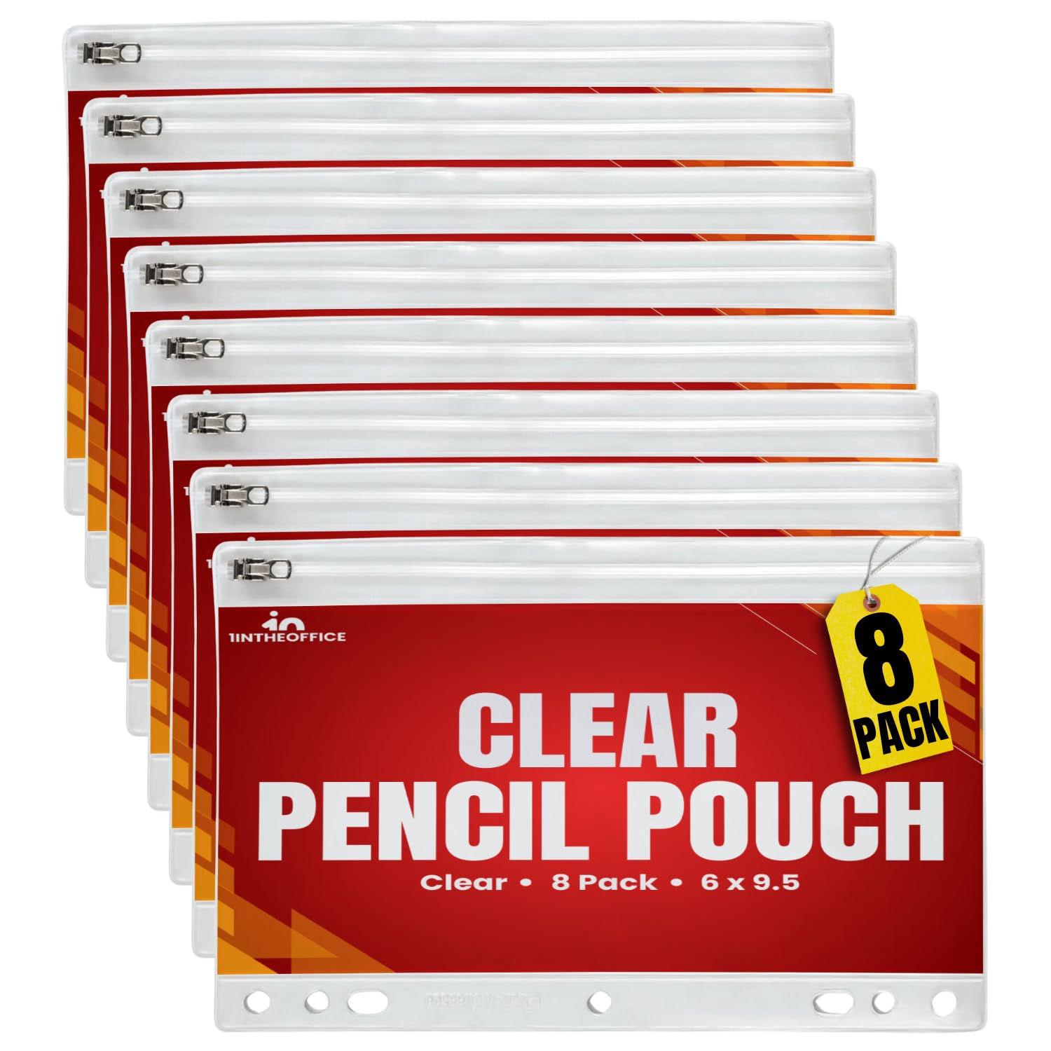 1InTheOffice Clear Pencil Pouch, Pencil Pouch for 3 Ring Binder, Zippered, Vinyl, 8 Pack|Office Supplies