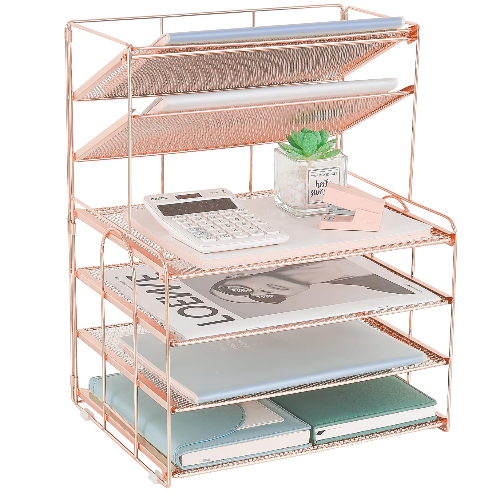 OPNICE Desk Organizers and Accessories, 6-Tier Letter Tray Paper Organizer, Desktop File Organizer, Office Desk Accessories for Office Supplies (Rose|Office Supplies