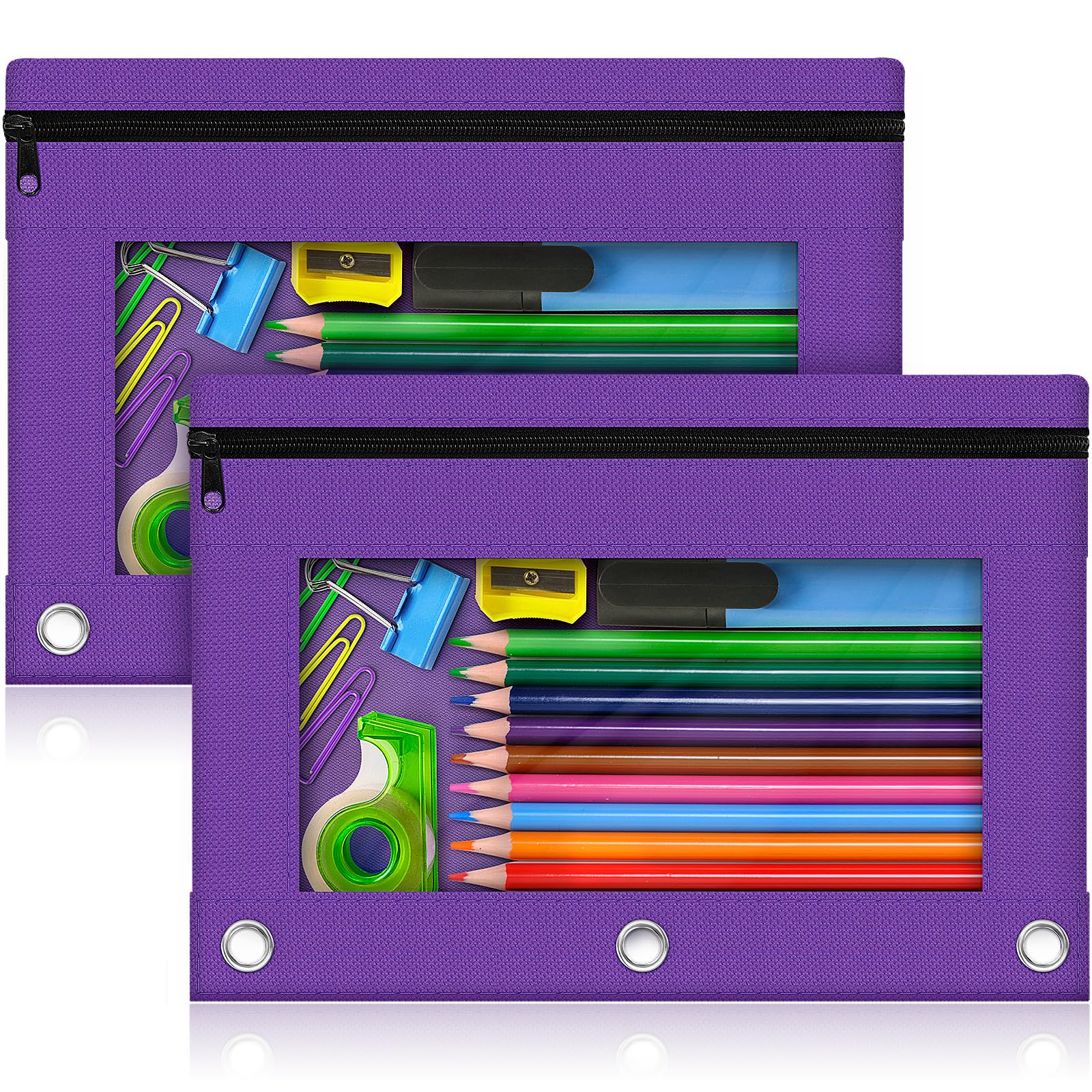 Pencil Pouch for 3 Ring Binder, 2 Pack Pencil Bags with Zipper, Purple Pencil Case for Classroom School Office Supplies, Large Sturdy and Durable|Office Supplies