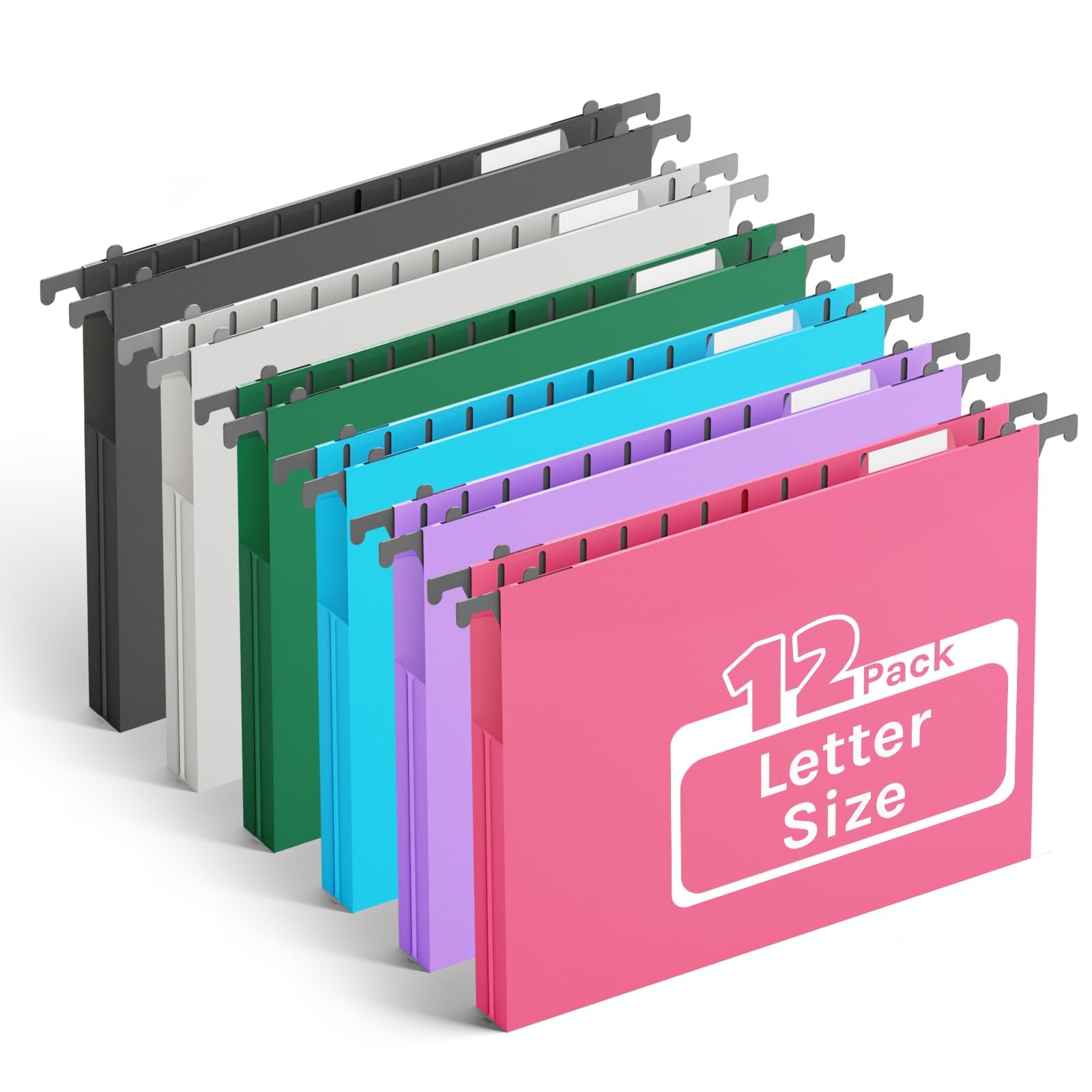 Ansook Letter Size Hanging File Folders Extra Capacity,Heavy Duty 1" Expandable File Folder Organizer,12 Pack Pastel Color File Cabniet Folders,|Office Supplies