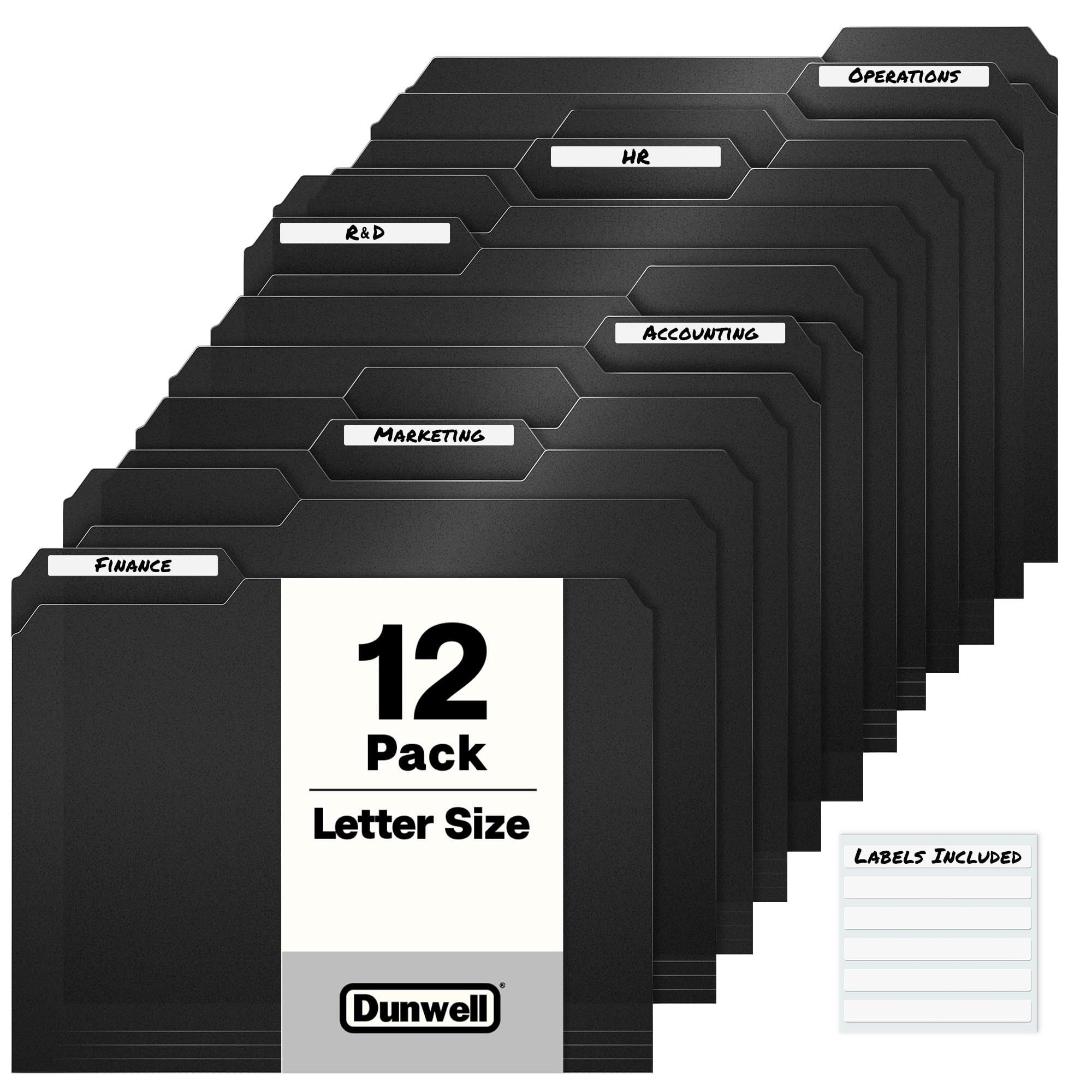 Dunwell Plastic Black 3-Tab Folders, (12 Pack), Sturdy 1/3 Tab File Folders for 8.5x11 Documents, Plastic Manila Filing Sleeves, Acid-Free Poly,|Office Supplies