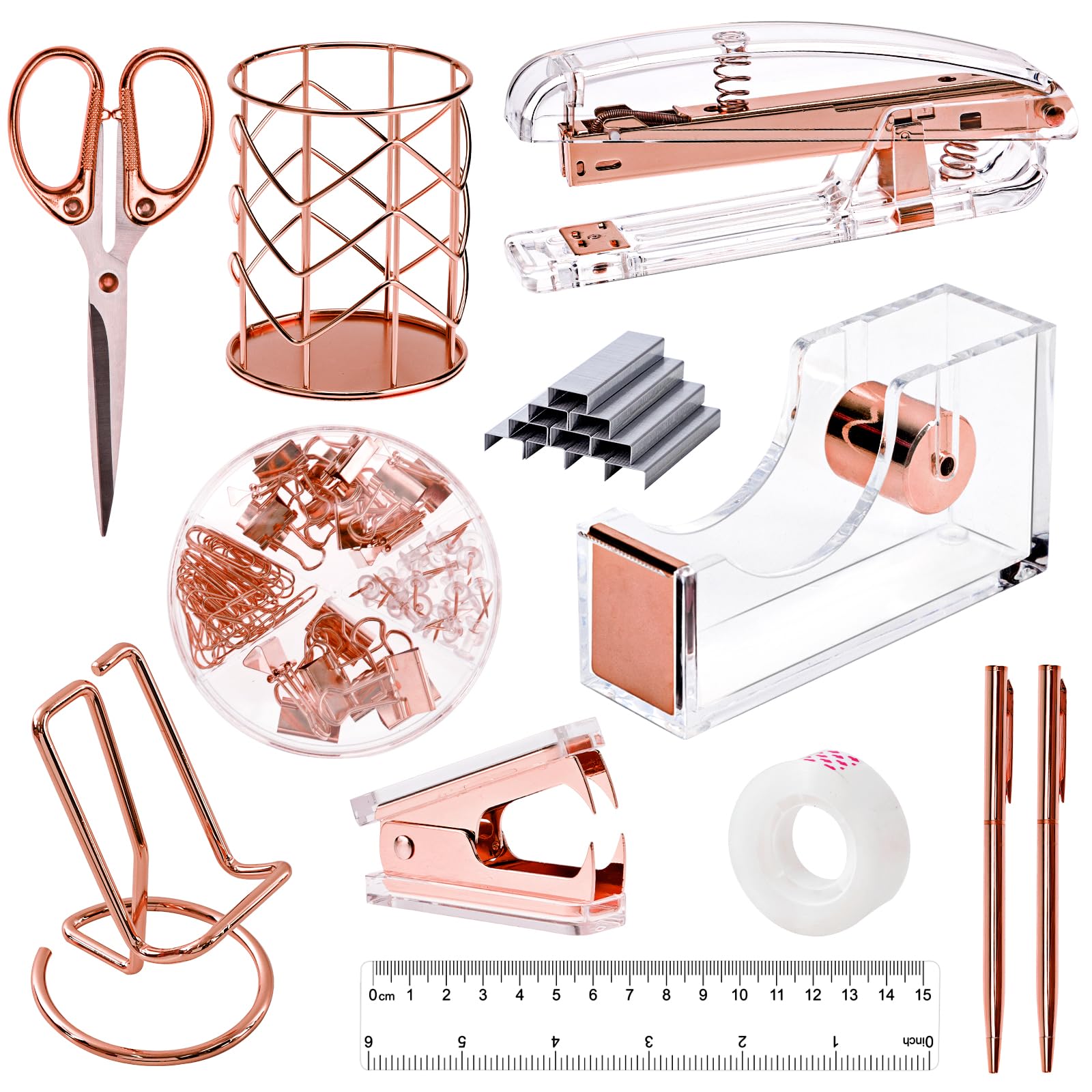 EOOUT Rose Gold Desk Accessories, Office Supplies and Accessories Set, Acrylic Stapler Set, Staple Remover, Phone Holder, Pen Holder, Scissor, Ruler,|Office Supplies