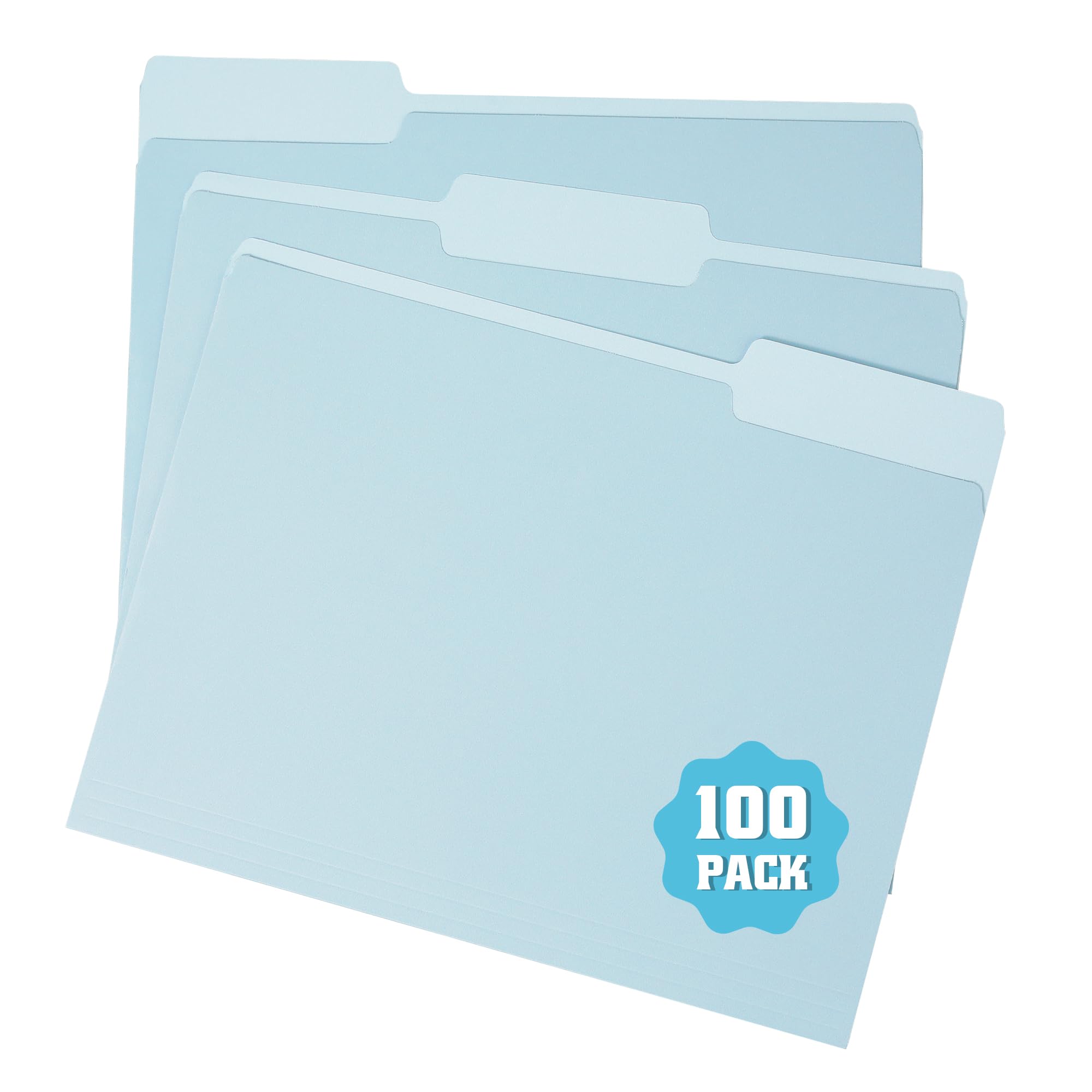 pmybupo100 Pack Colored Two Tone File Folders 8.5x11 Inch,1/3 Cut Tab Blue File Folders Letter Size,Office Folders for Document|Office Supplies