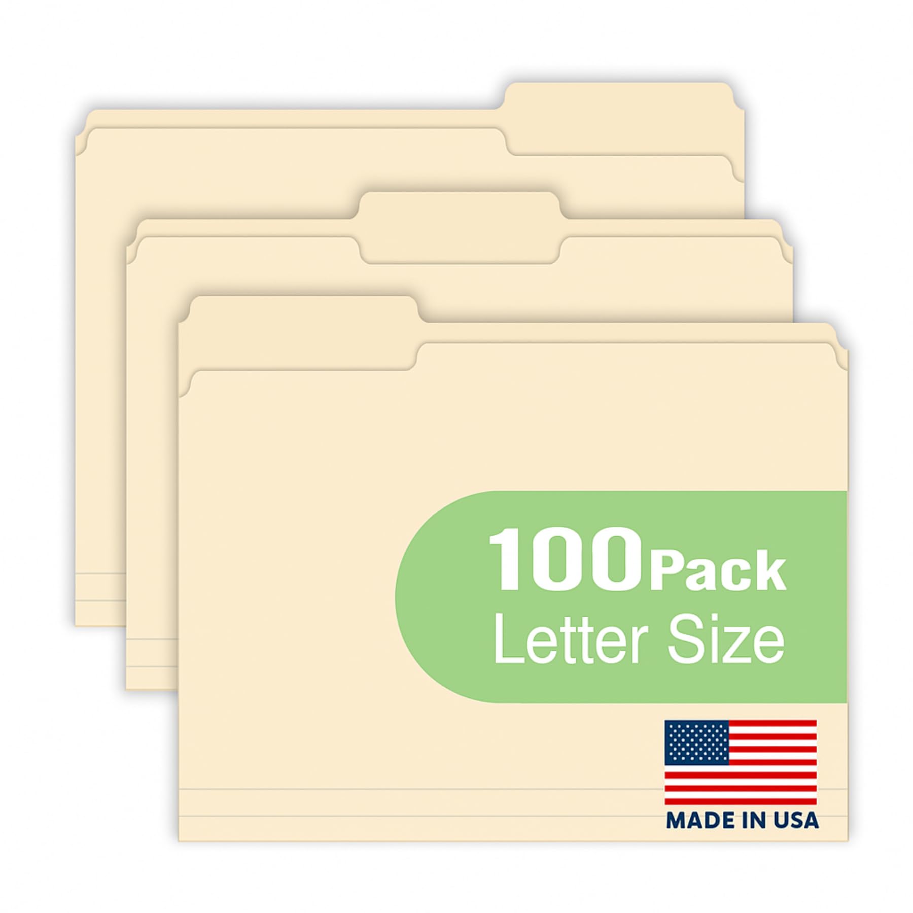 Woodlake Manila File Folders – Letter Size (8.5" x 11"), 1/3-Cut Oversized Tabs, 100 Pack, Heavyweight 120LB/220GSM Durable Paper Folders for Home,|Office Supplies