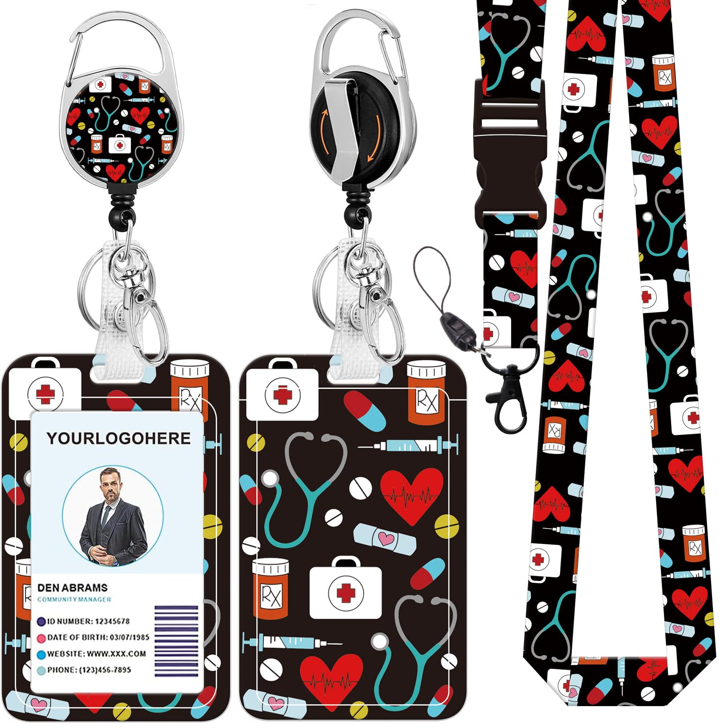 Badge Lanyard and ID Badge Holder, Retractable Badge Reels with Carabiner Reel Belt Clip, Strap Lanyard with Lobster Clasp for Badge Holders, Nurse|Office Supplies