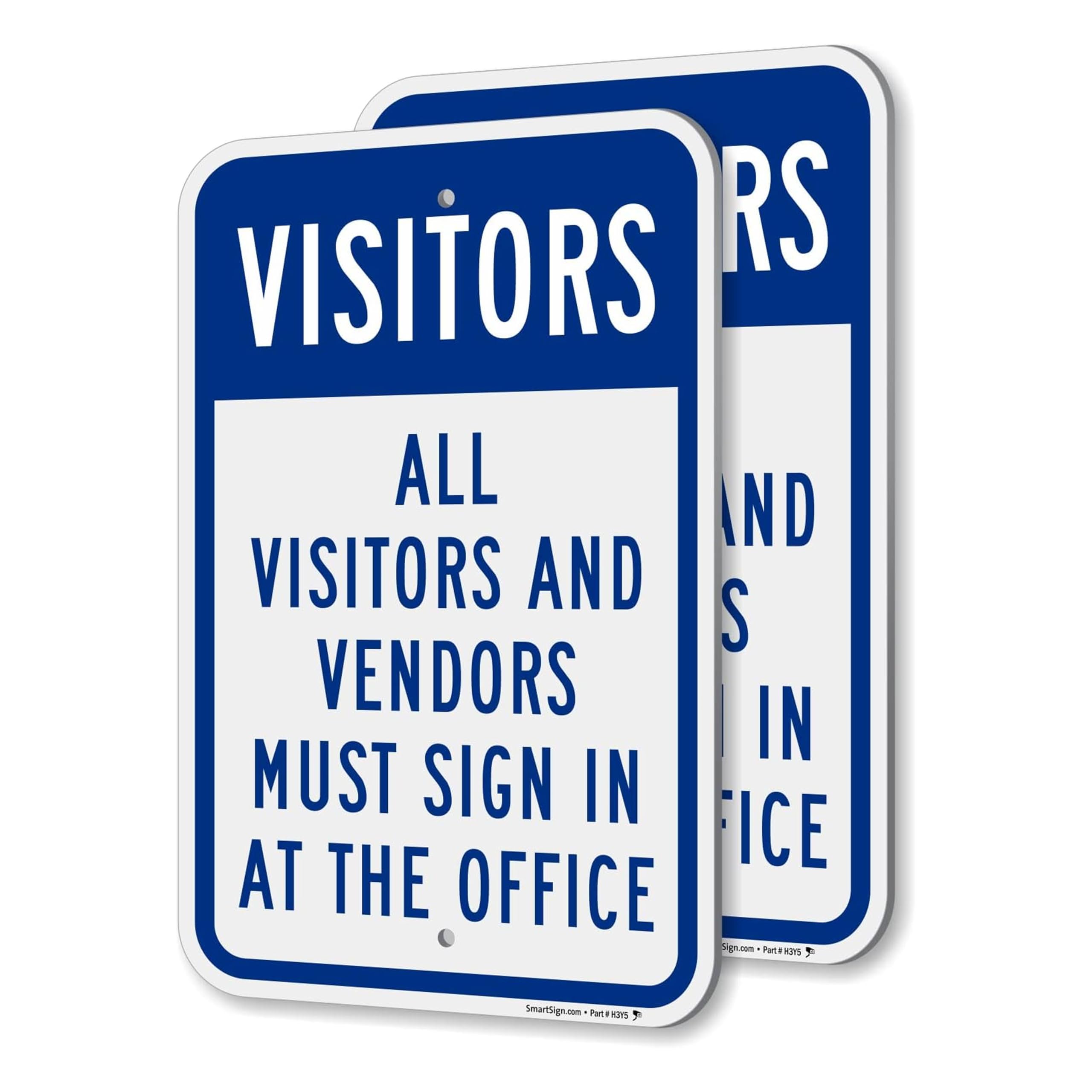 SmartSign All Visitors And Vendors Must Sign In At Office Sign - 2 Pack, 18 x 12 inch, 2mm Thick Aluminum Composite, Blue and White, Made in USA|Office Supplies