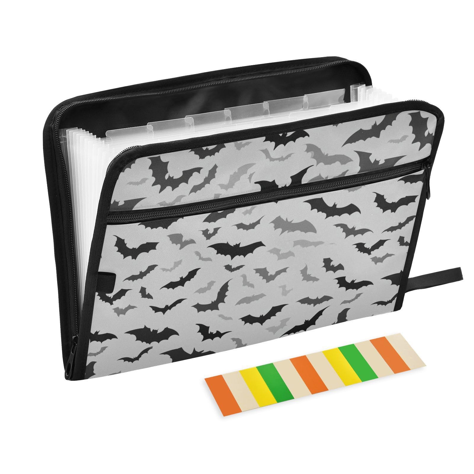 Sletend Letter A4 Paper Document Accordion Folder Cool Bat 13 Pocket Expanding File Folder with Zipper and Labels Accordion Lie Keeper for Letter Size|Office Supplies
