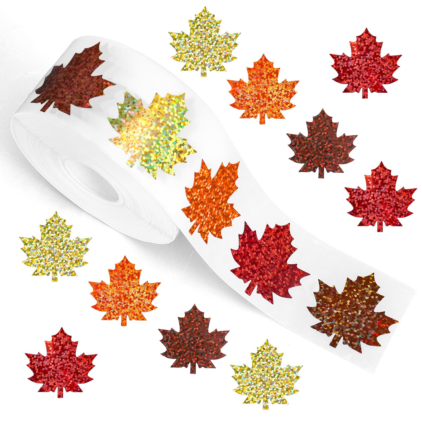 JarThenaAMCS 1000 Pcs Fall Leaves Stickers Thanksgiving 4 Colors Holographic Maple Leaf Stickers Seal Self-Adhesive Paper Decals for Autumn Goodie|Office Supplies