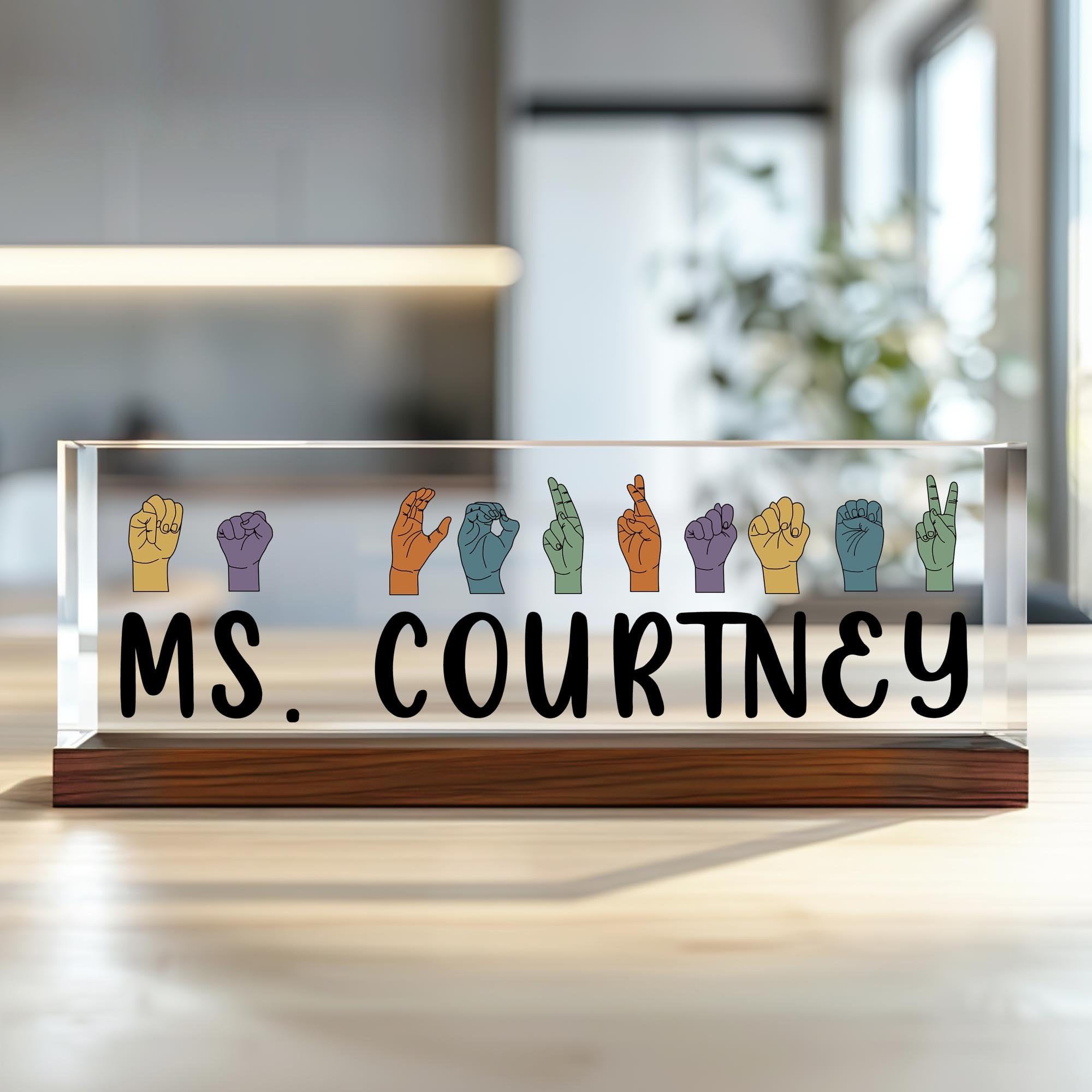 Kiuties Personalized Sign Language Desk Name Plate, Teacher Name Plate, Custom Name Teacher Acrylic Block, ASL Gift, ASL Teacher Gift, Sign Language|Office Supplies