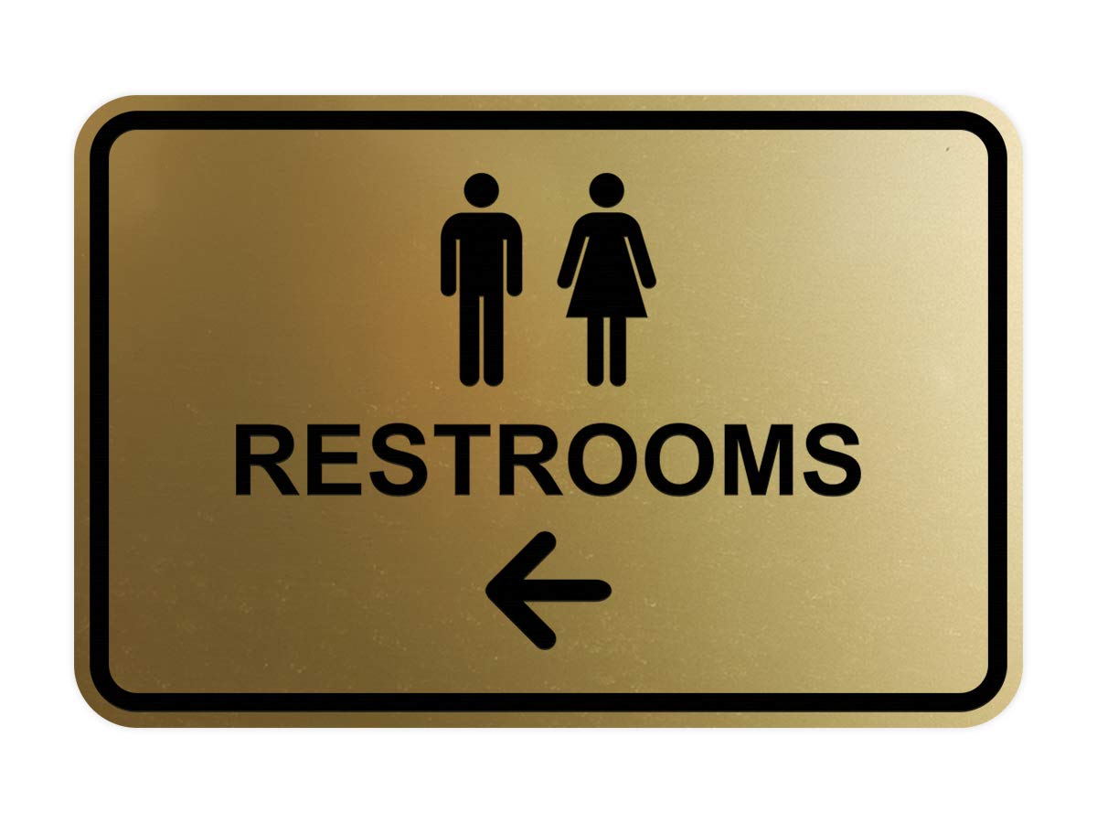 Signs ByLITA Classic Framed Restrooms Left Arrow Sign (Brushed Gold) - Medium|Office Supplies