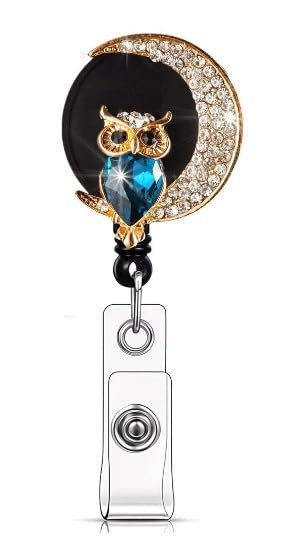 1Pc Bling Black Owl Crystal Badge,ID Name Badge Reels with Alligator Swivel Labels,Reels Retractable Rhinestone Badge Holder, ID Badge Clip for|Office Supplies