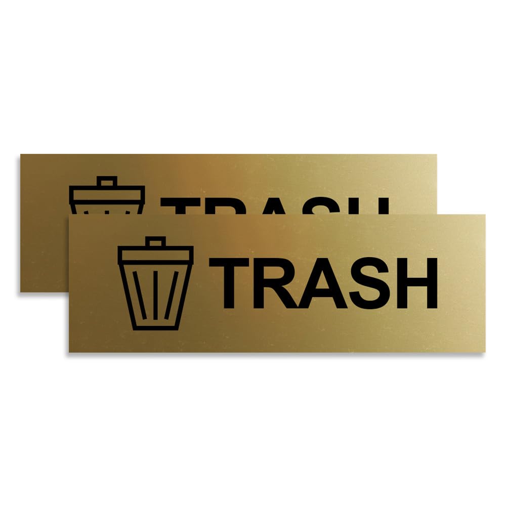 Basic Trash Sign (Brushed Gold) - Medium 2 Pack|Office Supplies
