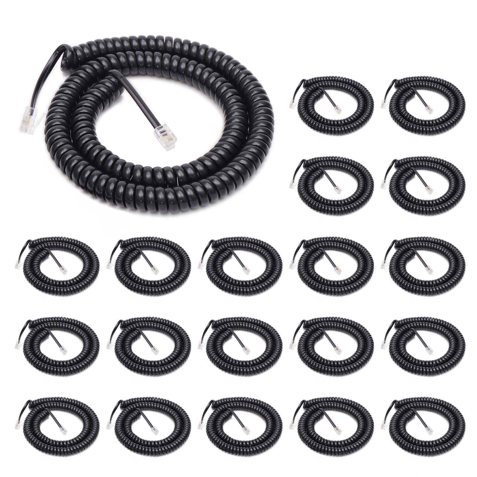 Uvital 20 Pack Phone Cord for Landline, Coiled 1.6Ft / Uncoiled 10Ft Landline Telephone Handset Cord, RJ9/RJ10/RJ22 4P4C Phone Cable, Black|Office Supplies