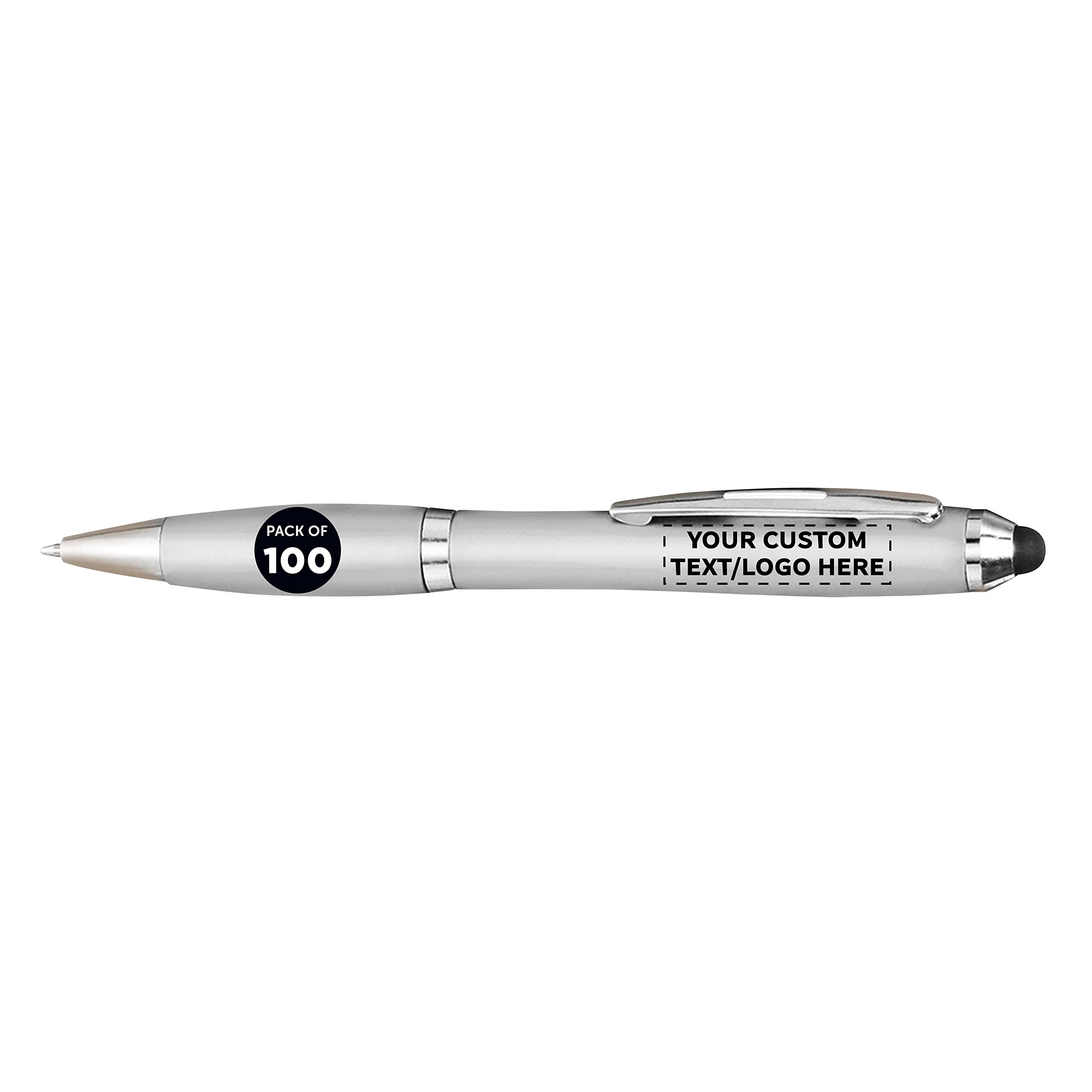 DISCOUNT PROMOS Custom Plastic Stylus Pens Set of 100, Personalized Bulk Pack - Black Ink, Great for Office, School, Business, Tradeshows, Events -|Office Supplies