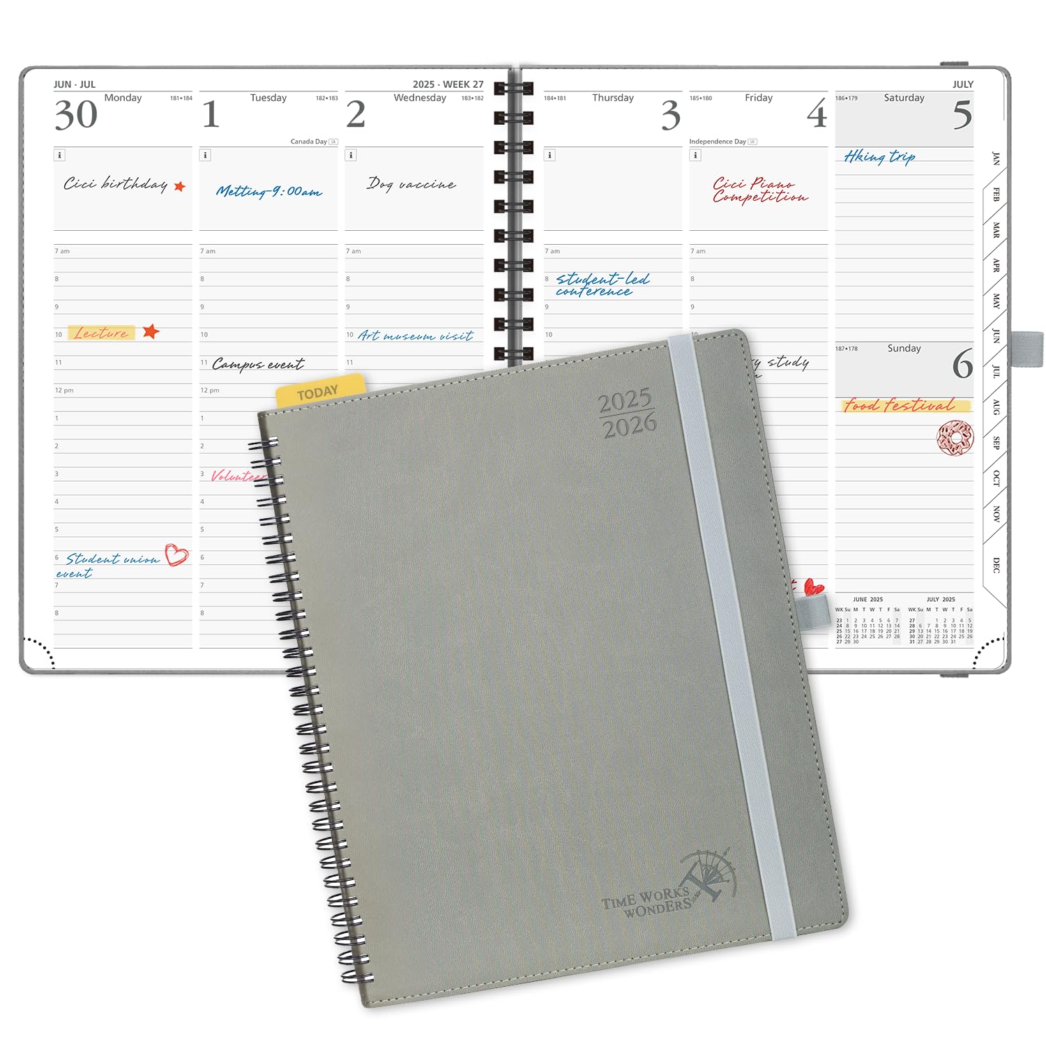POPRUN Planner 2025-2026 (Large - 8.5'' x 10.5'') Academic Weekly Calendar (July 2025 - June 2026) with Hourly Time Slots, Monthly Tabs, 100GSM Thick|Office Supplies