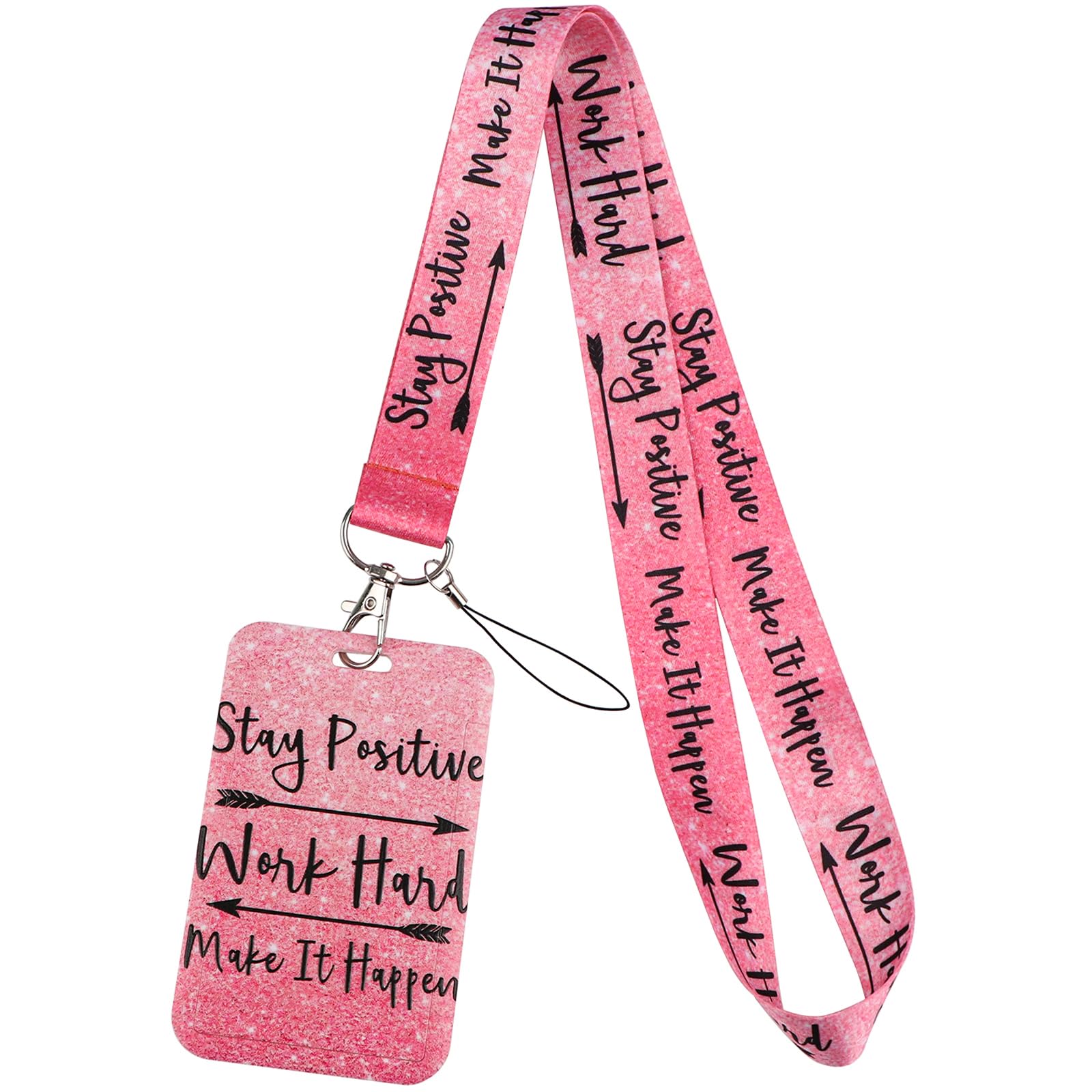 Juanooo Pink ID Badge Holder Lanyard for ID Badge & Keys Cute for Women Girls Teachers Work School Preppy Aesthetic Keychain Lanyard ID Card Holder(|Office Supplies