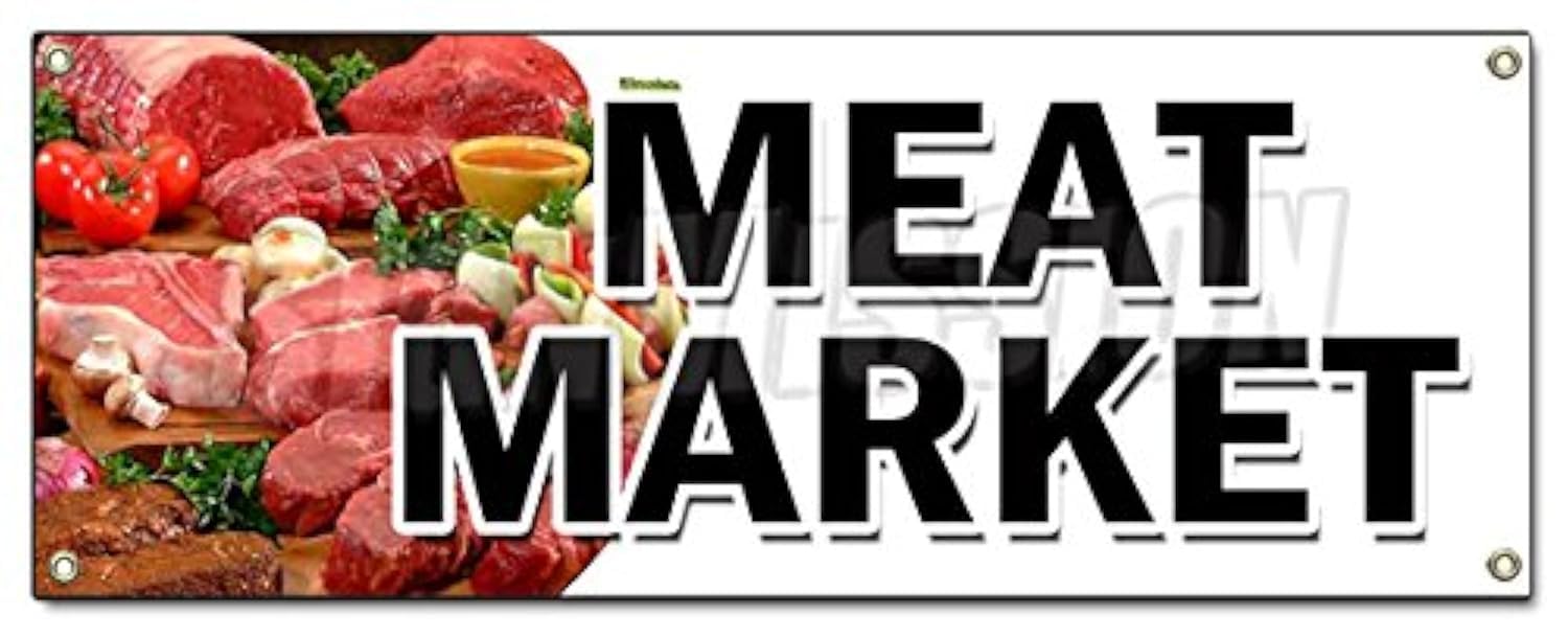 Meat Market Banner Sign Butcher Gourmet USDA Prime Pork Chicken Corn|Office Supplies