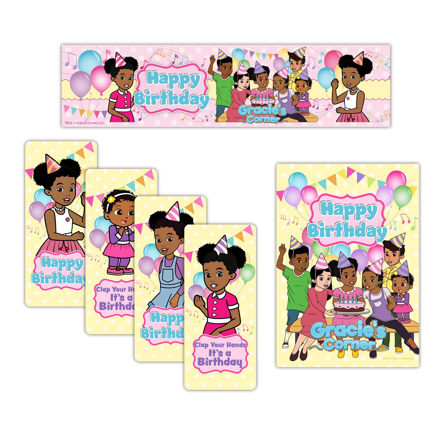 Gracie's Corner Birthday Party Stickers, 30 Rectangular Pink Multi-Color Drink Labels & Gift Tags|Office Supplies