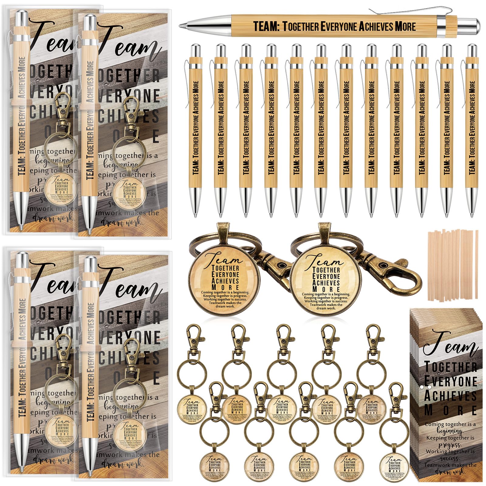 Trandraft 25 Sets Team Appreciation Gift for Employees Bulk Valentines Inspirational Bamboo Pens Thank You Keychain Motivational Bookmarks Best Team|Office Supplies